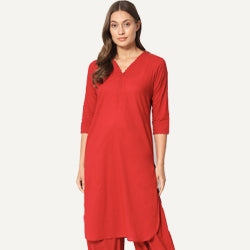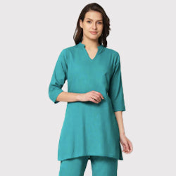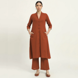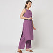 Beige Collar Neck Mid Length Solid Co-ord Set