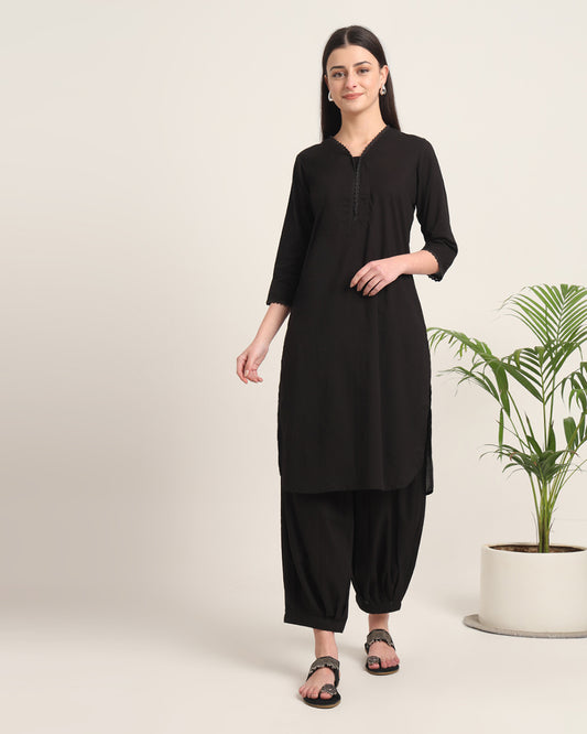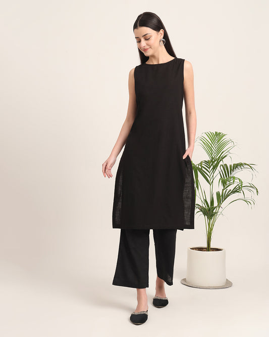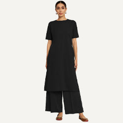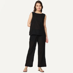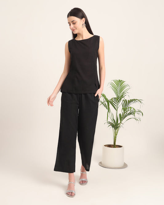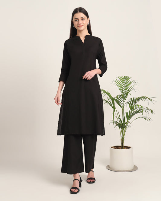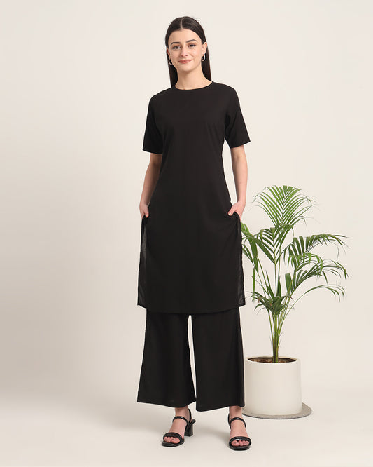Black Everyday Bliss Notch Neck Solid Co-ord Set
