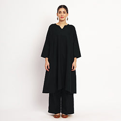 Black Everyday Bliss Notch Neck Solid Co-ord Set
