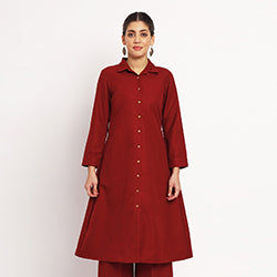 Beige Collar Neck Mid Length Solid Co-ord Set