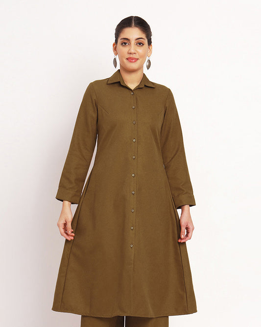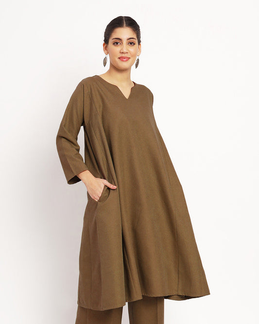 Peanut Brown Artfull A-Line Woolen Kurta (Without Bottoms)