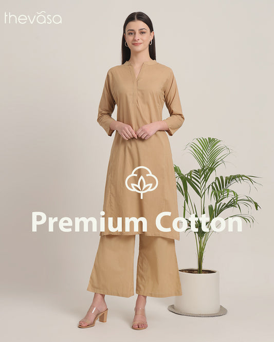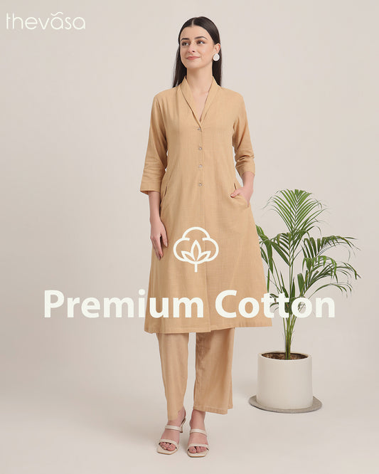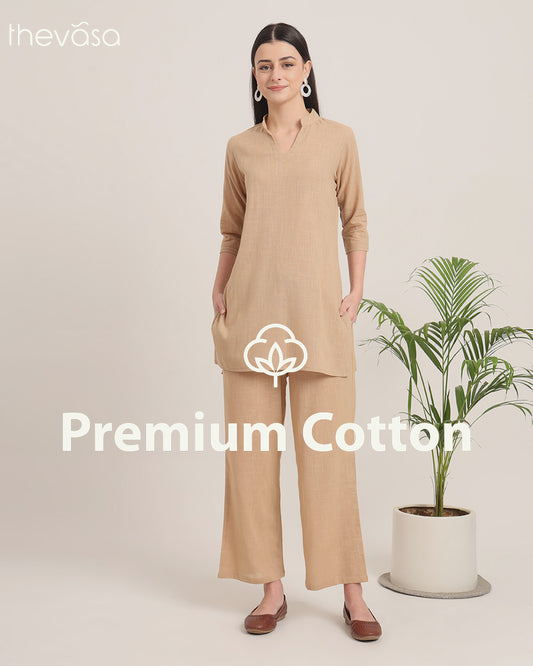 Beige Collar Neck Mid Length Solid Co-ord Set