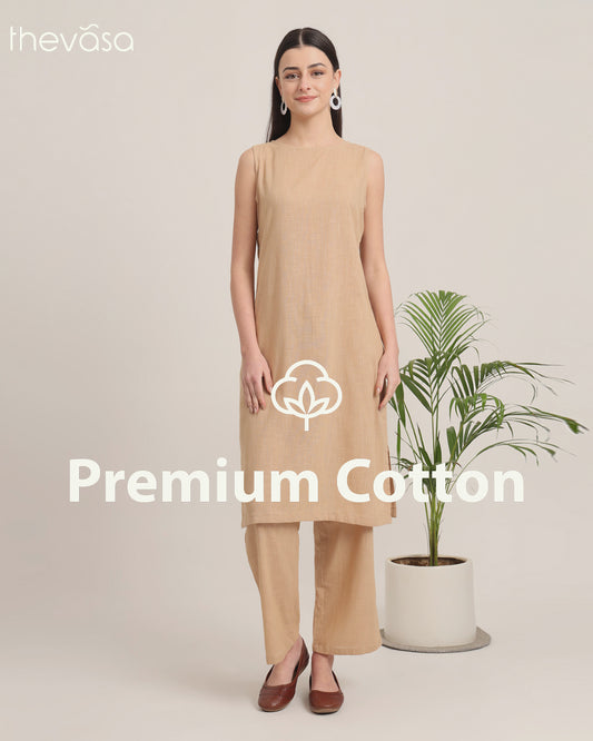Beige Sleeveless Long Length Solid Co-ord Set