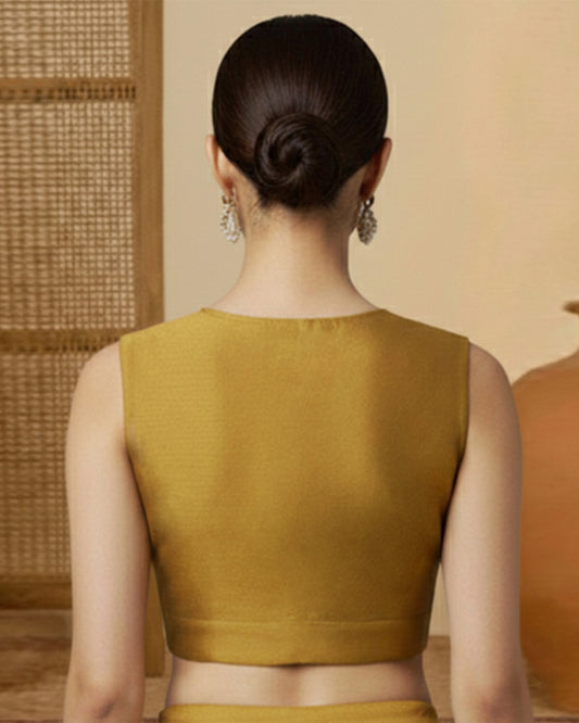 Silk Yellow Deep V Blouse
