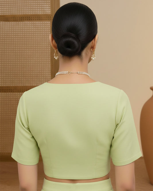 Silk Pear Green Deep V Blouse