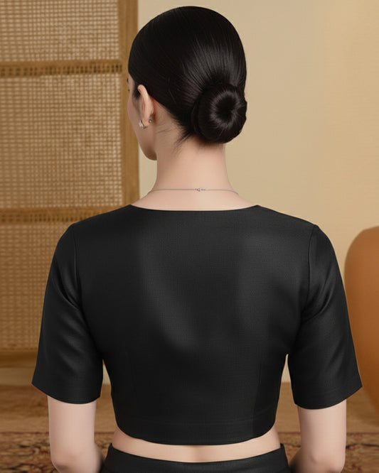 Silk Black Deep V Blouse