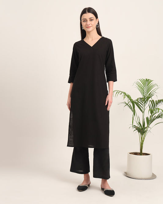 Black Everyday Bliss Notch Neck Solid Co-ord Set