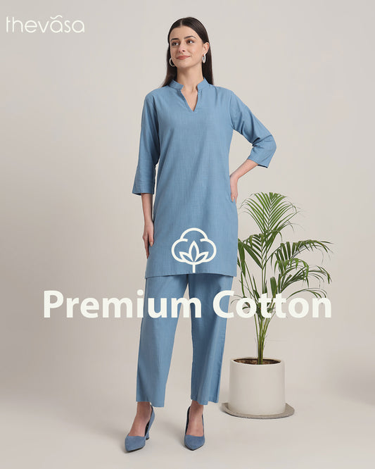 Blue Dawn Collar Neck Mid Length Solid Kurta (Without Bottoms)