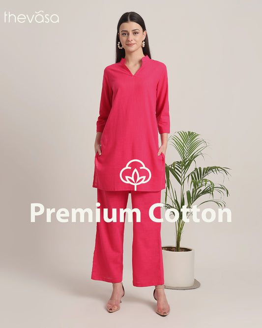 Queen's Gulabi Collar Neck Mid Length Solid Kurta (Without Bottoms)