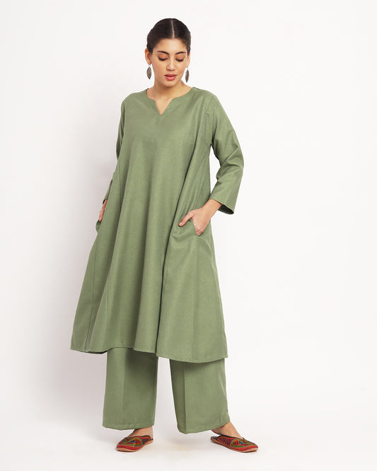 Pistachio Green Vintage Allure Woolen Phiran Co-ord Set