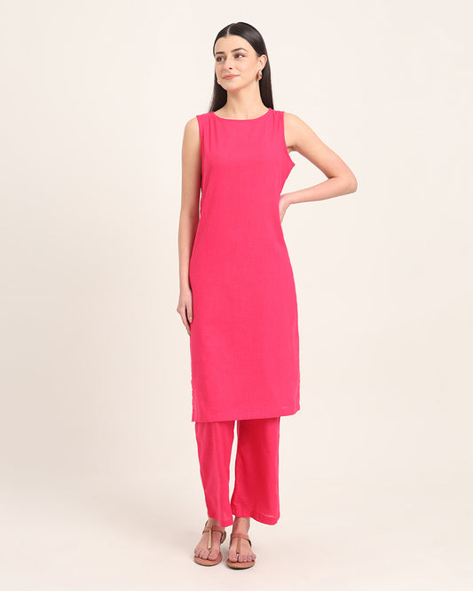 Queens Gulabi Sleeveless Long Length Solid Co-ord Set