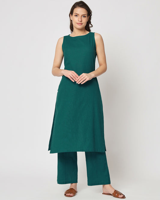 Deep Teal Sleeveless Long Length Solid Co-ord Set