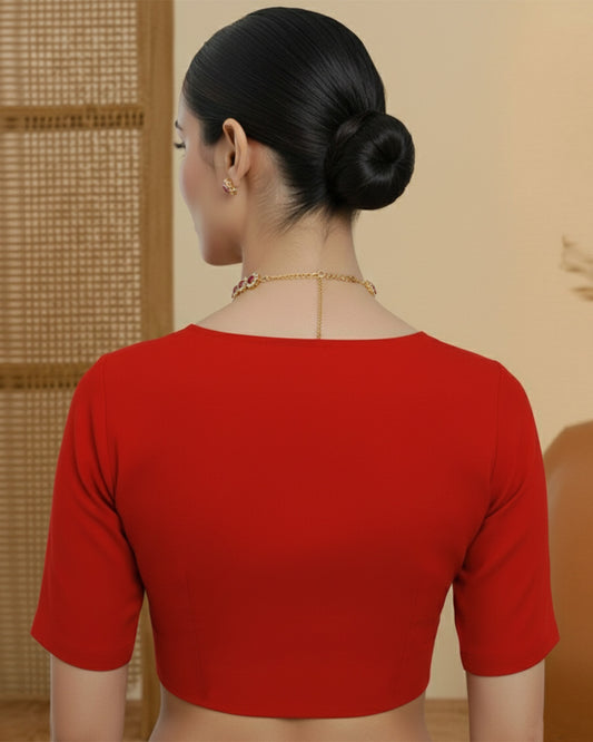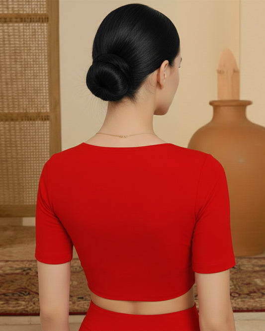 Red Rayon V Gather Blouse