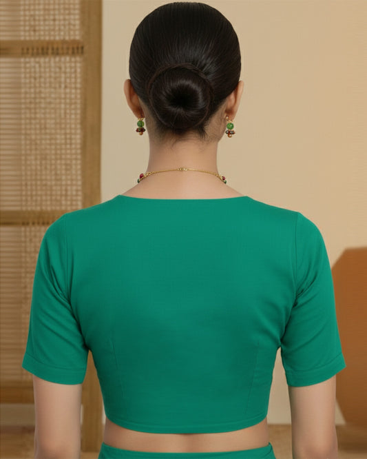 Green Rayon Deep V Blouse