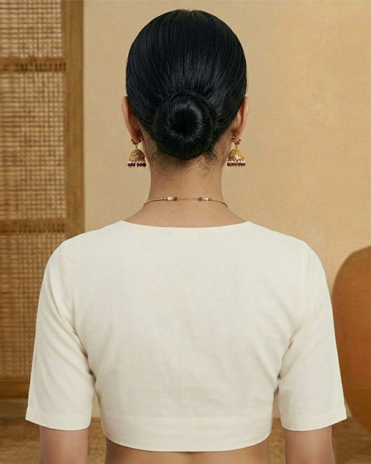 White Rayon V Gather Blouse