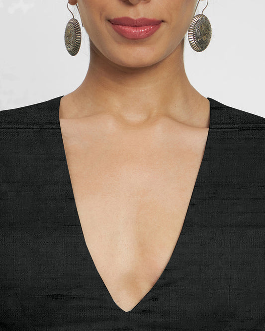 Thevasa Women's Black Art Silk Divine Depth Blouse