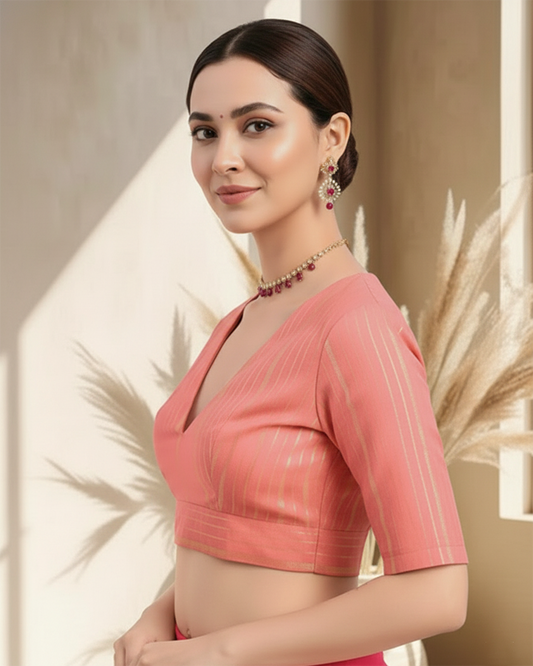 Festive Iris Pink Golden Stripes Deep V Blouse
