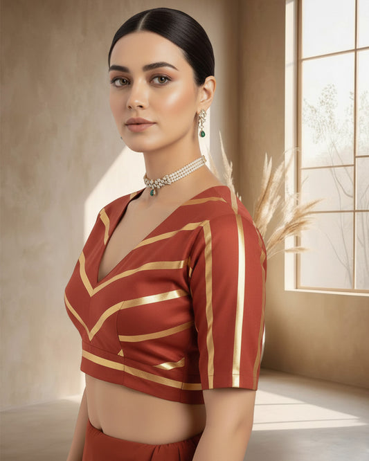 Festive Rosette Pink Golden Stripes Deep V Blouse