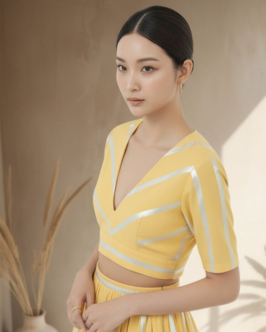 Festive Lime Golden Stripes Stripes Deep V Blouse