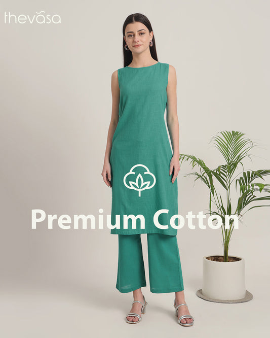 Deep Teal Sleeveless Long Solid Kurta (Without Bottoms)