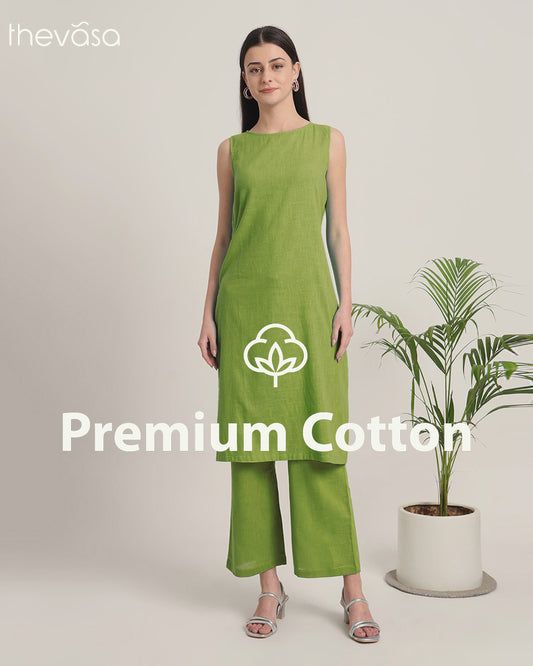 Greening Spring Sleeveless Long Solid Kurta (Without Bottoms)