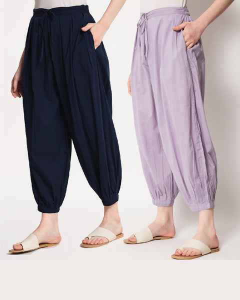 Combo: Beige & Blue Dawn Pleated Salwar- Set of 2