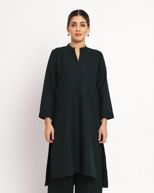 Deep Teal High-Low Woolen Kurta (Without Bottoms)