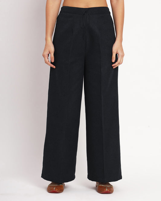Black Woolen Wide Pants