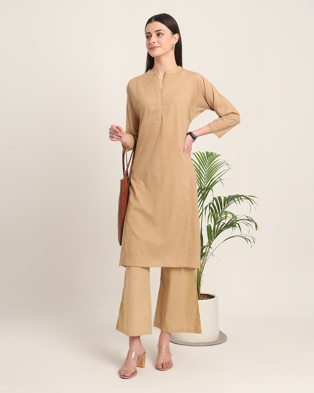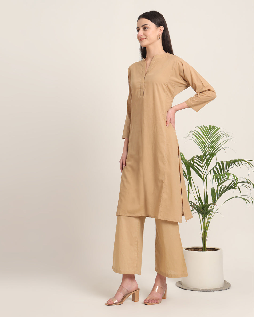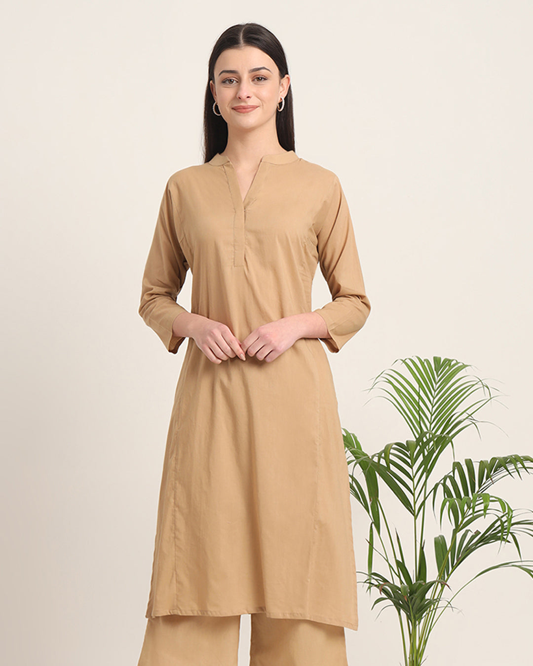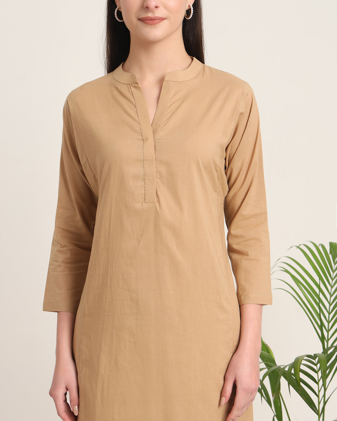 Beige Everyday Bliss Notch Neck Solid Kurta (Without Bottoms)