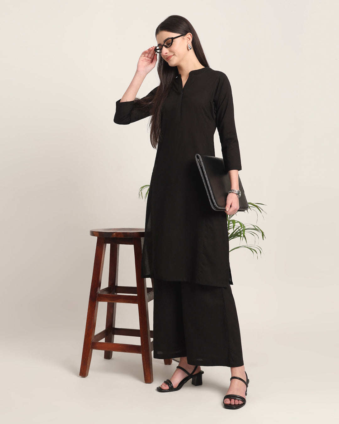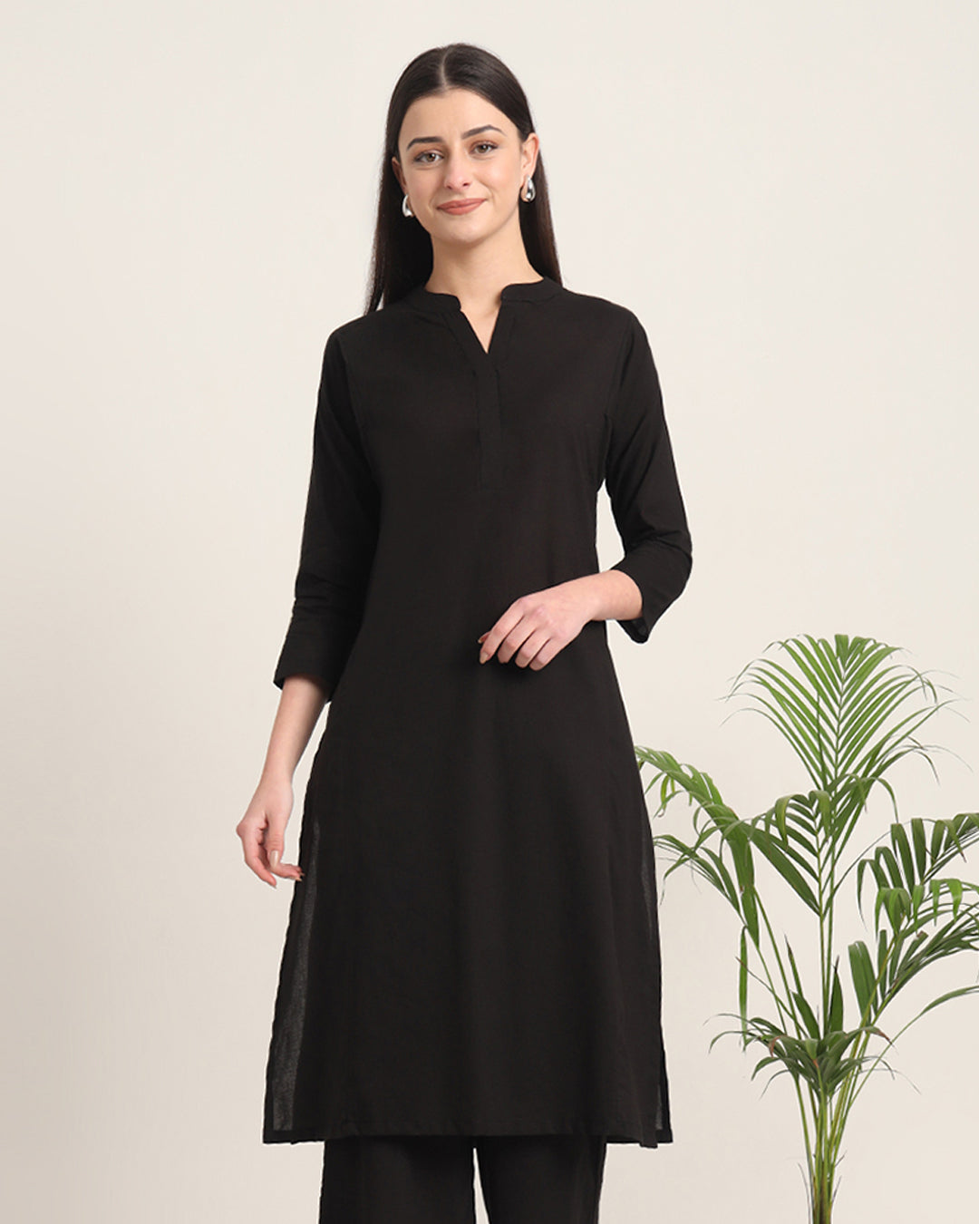 Black Everyday Bliss Notch Neck Solid Kurta (Without Bottoms)