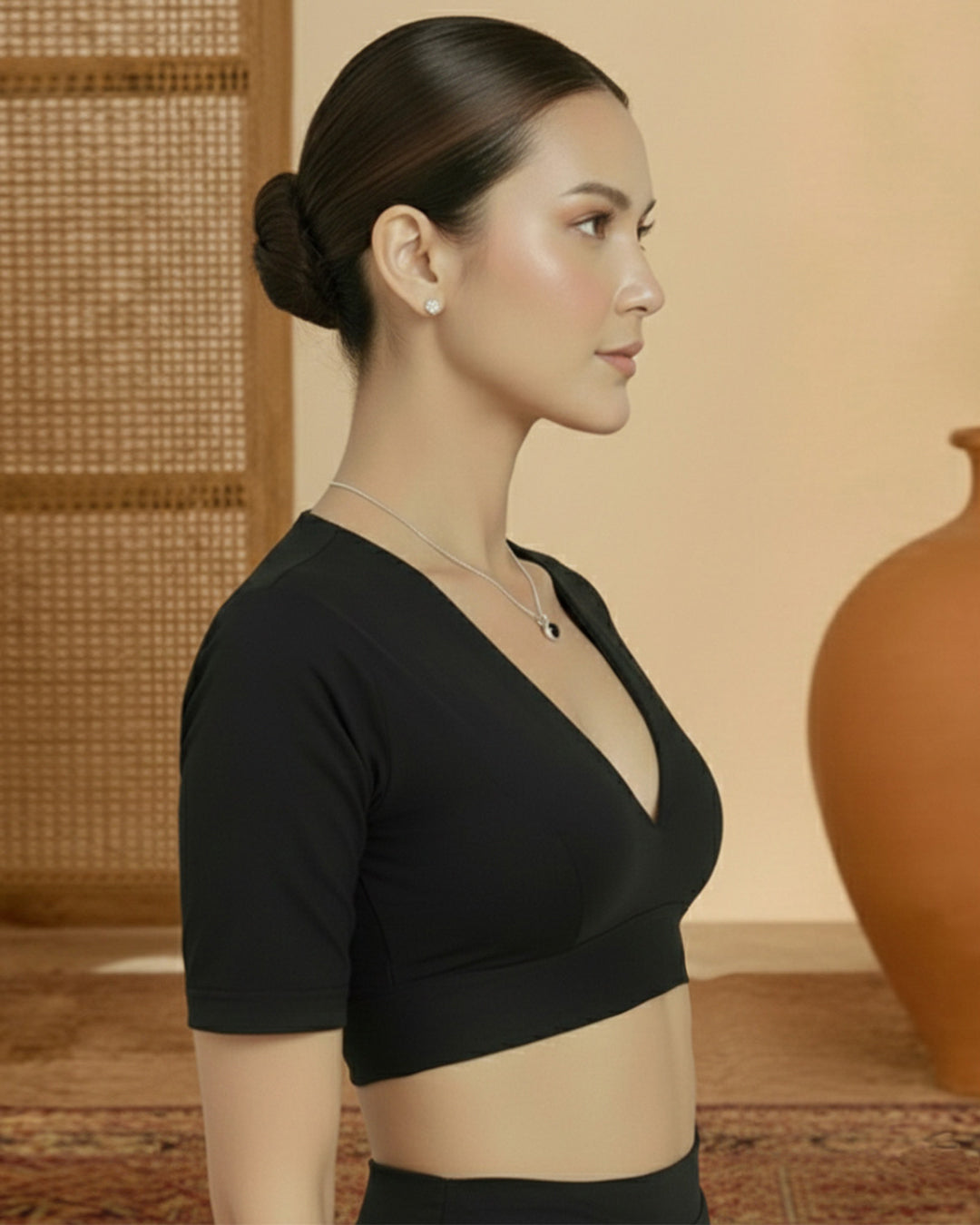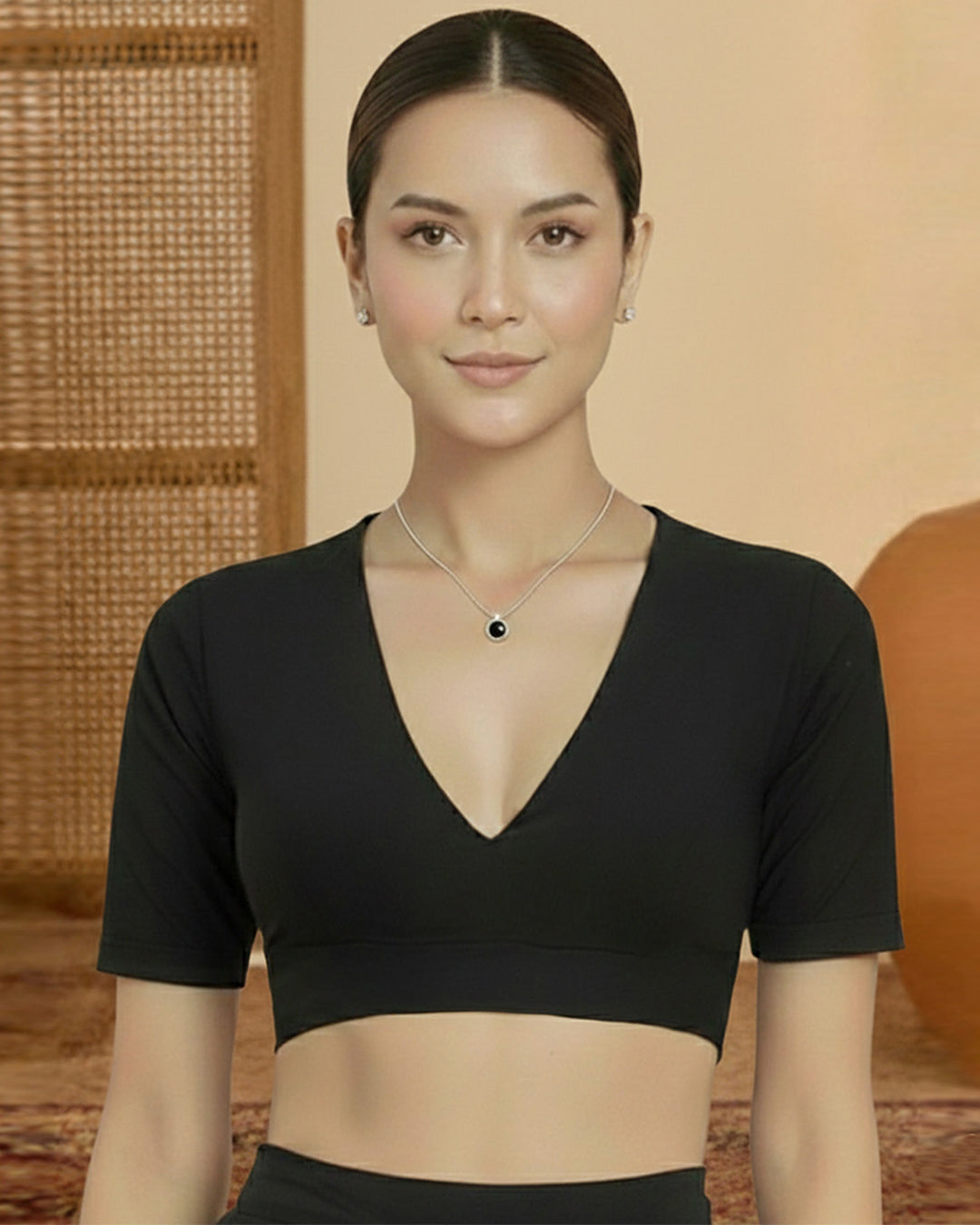 Black Rayon Deep V Blouse