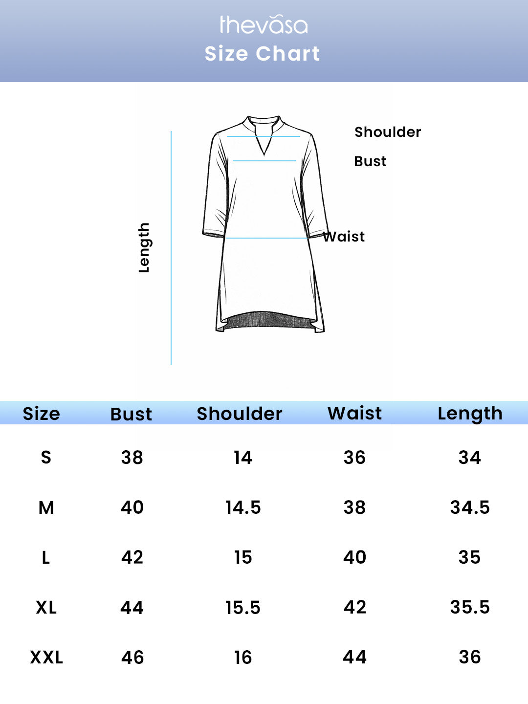 SIZE GUIDE (Top/Tunic): The measurements given below are garment measurements.