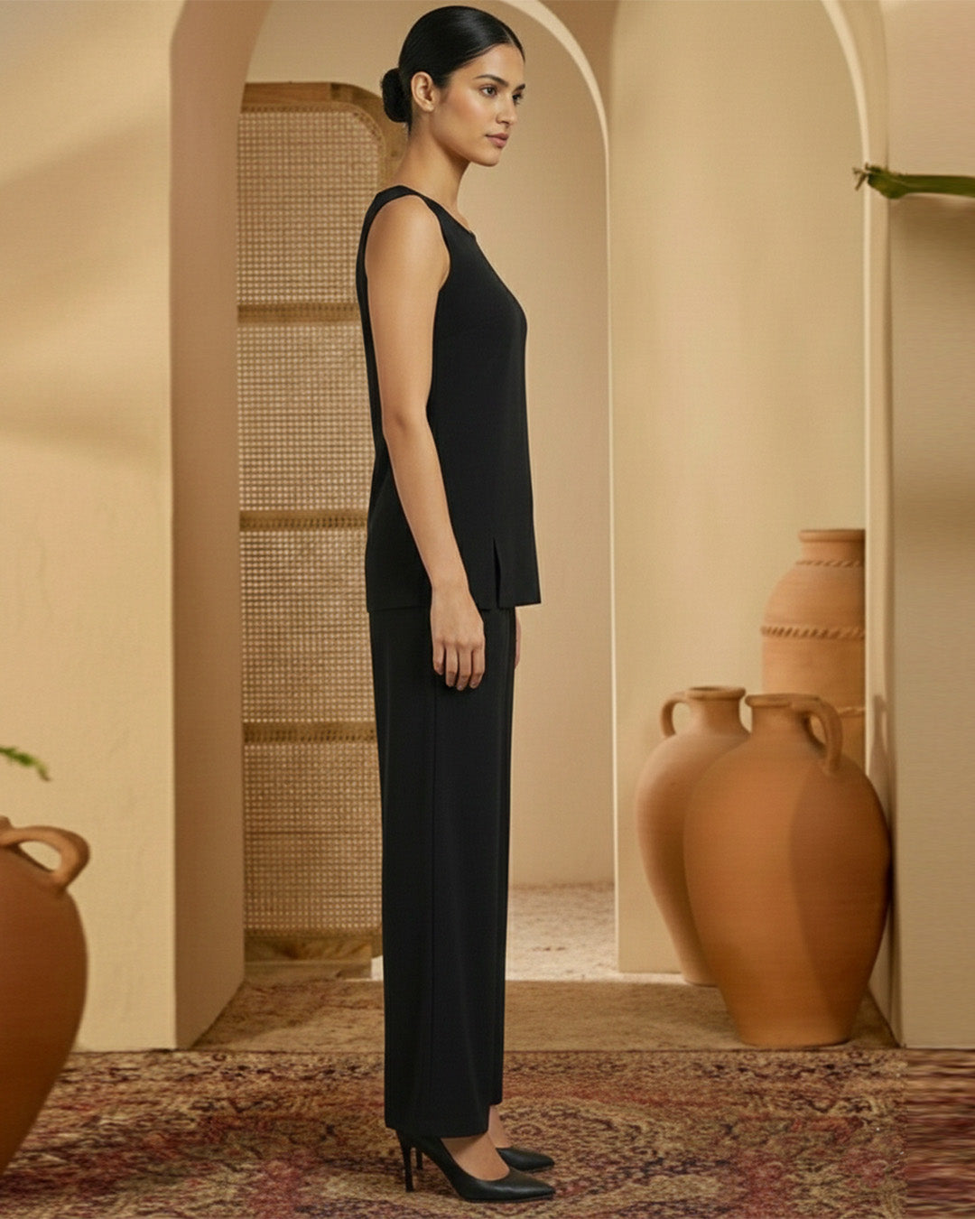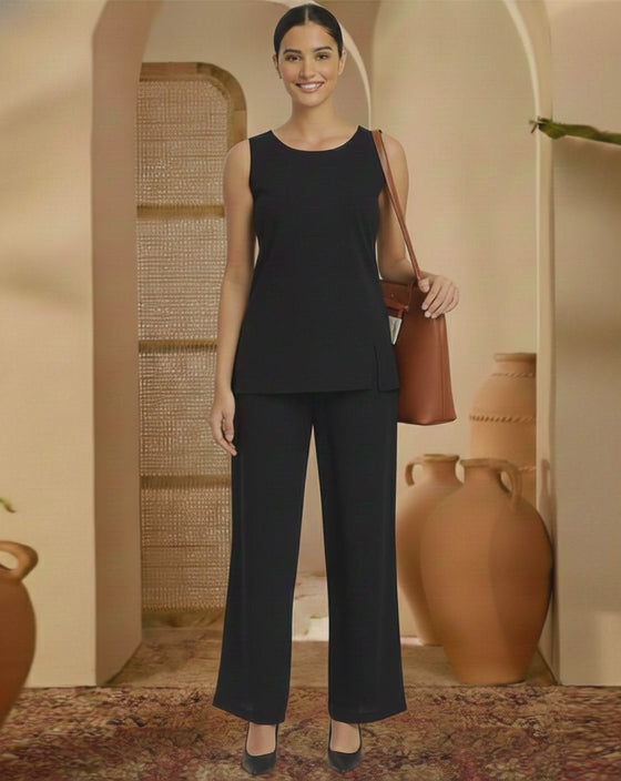 Black Rayon Sleeveless Top Co-ord Set
