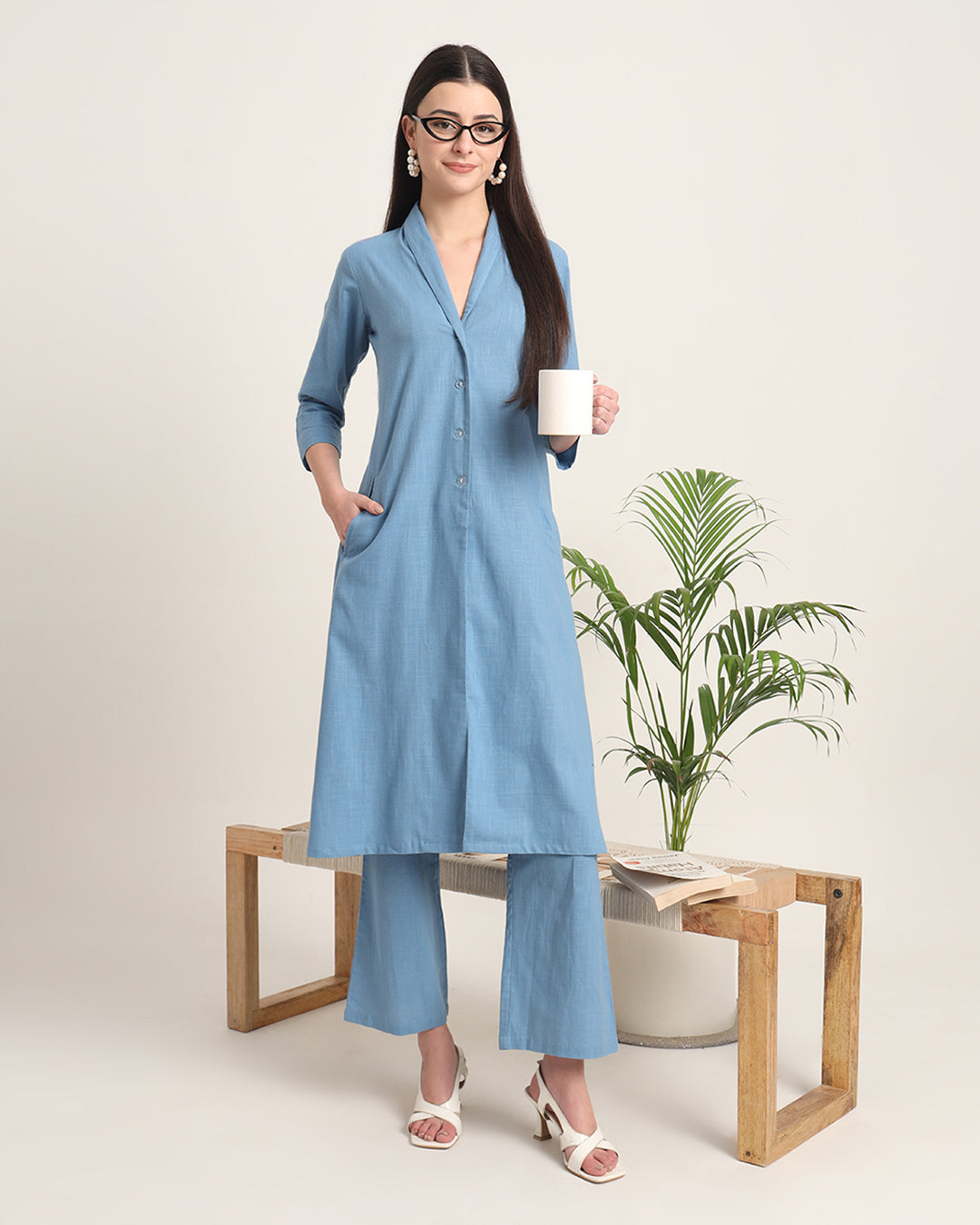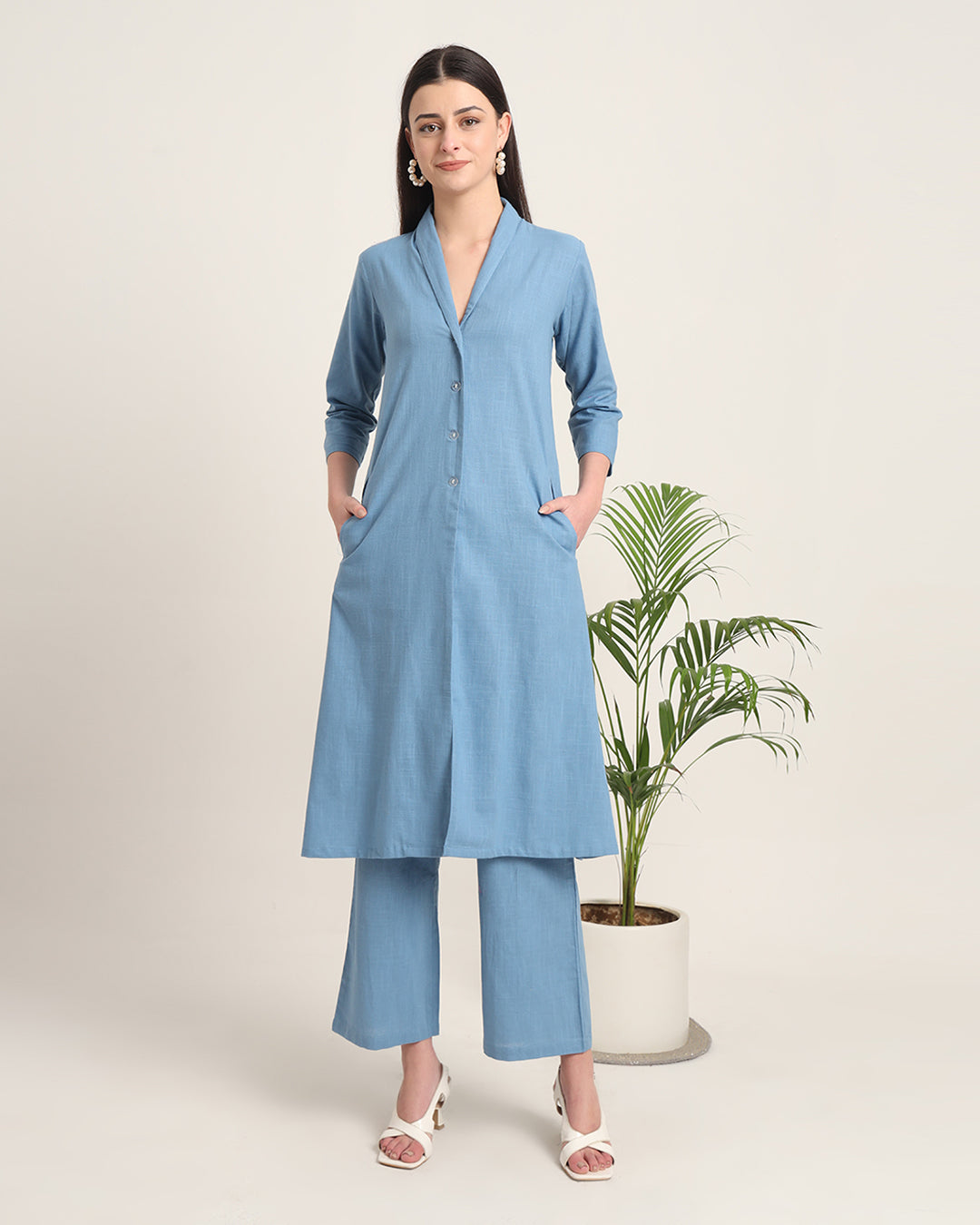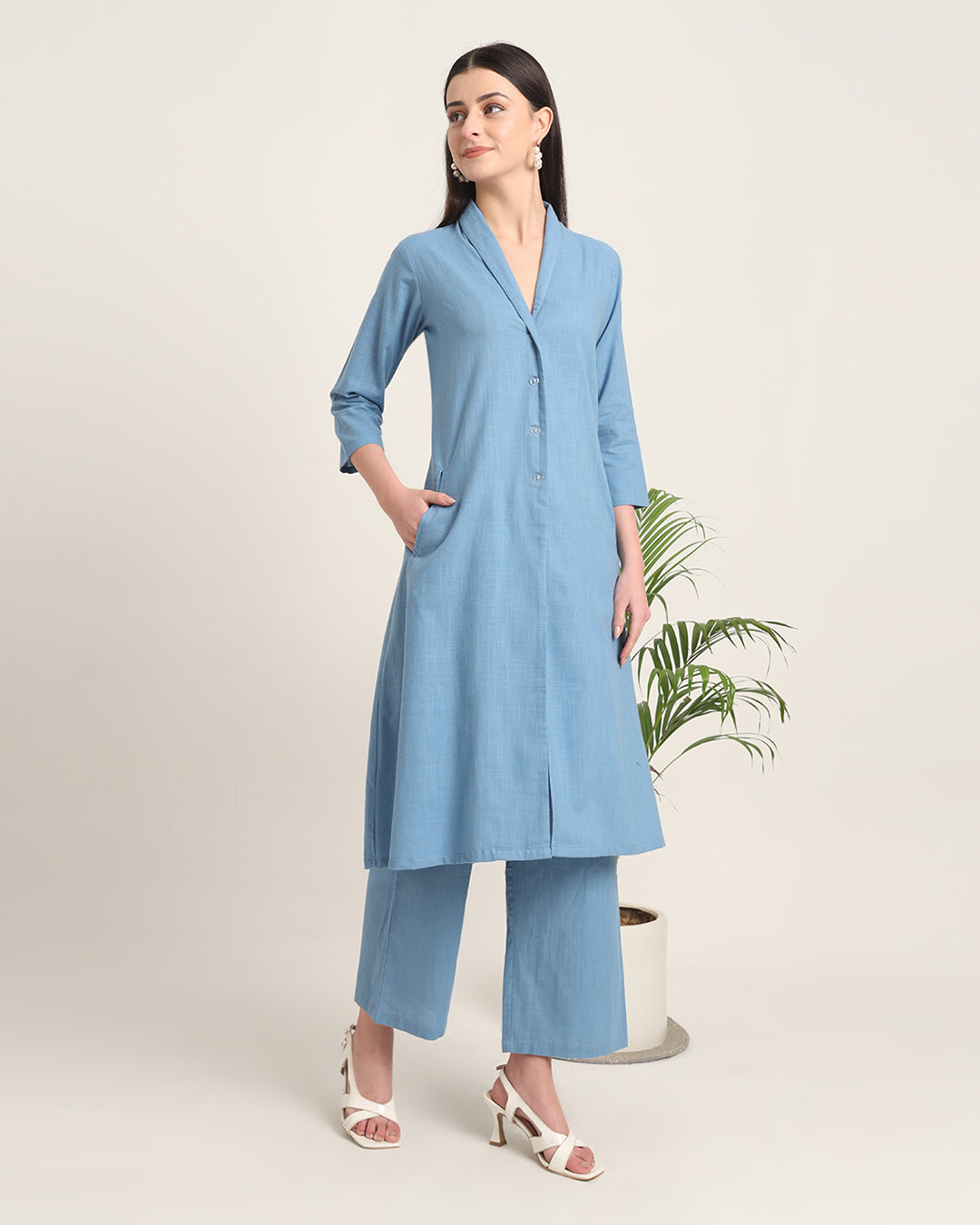 Blue Dawn Boho Harmony Flared Solid Co-ord Set