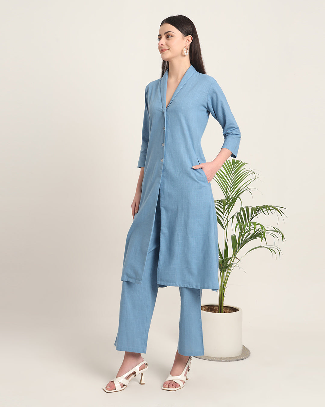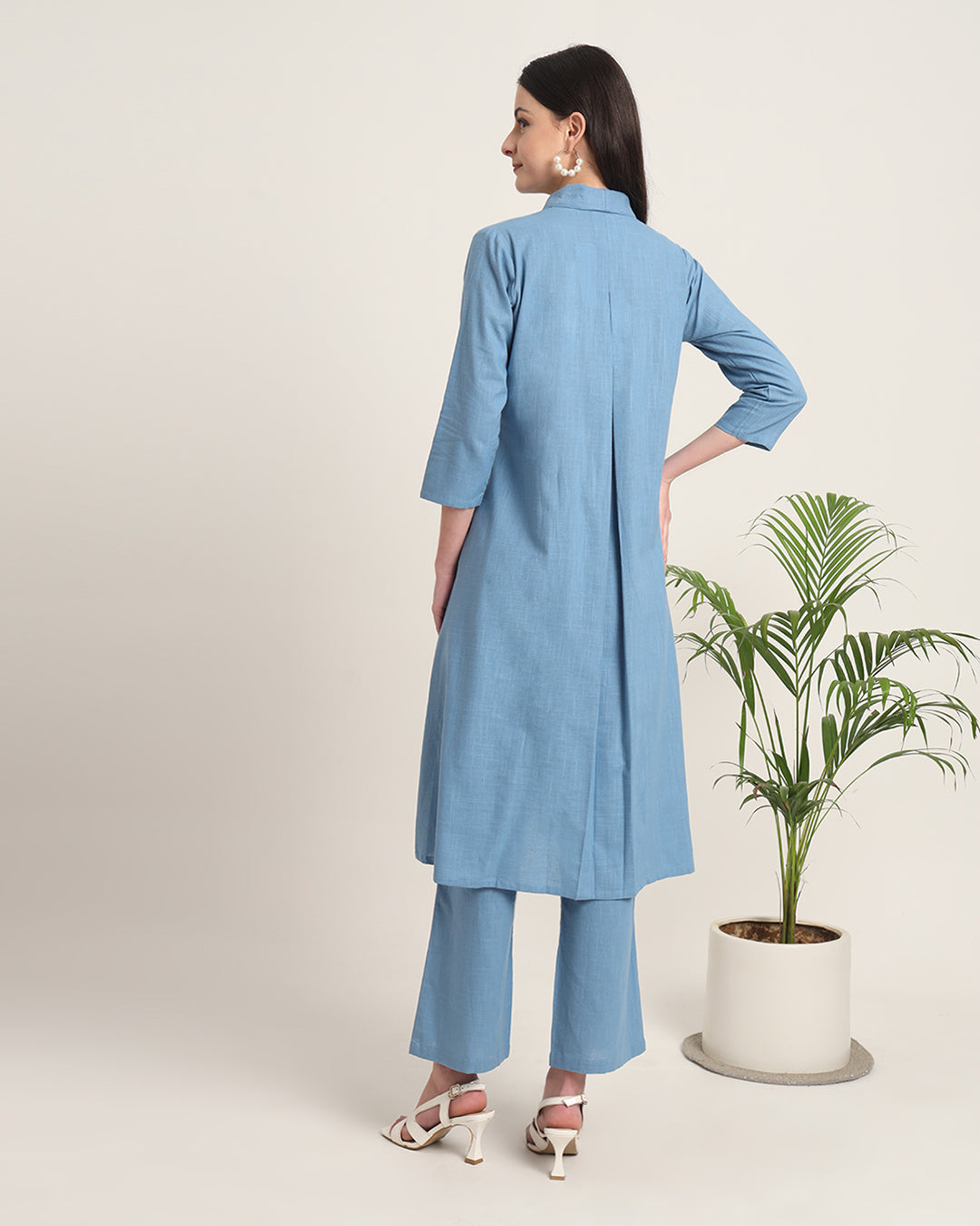 Blue Dawn Boho Harmony Flared Solid Kurta (Without Bottoms)