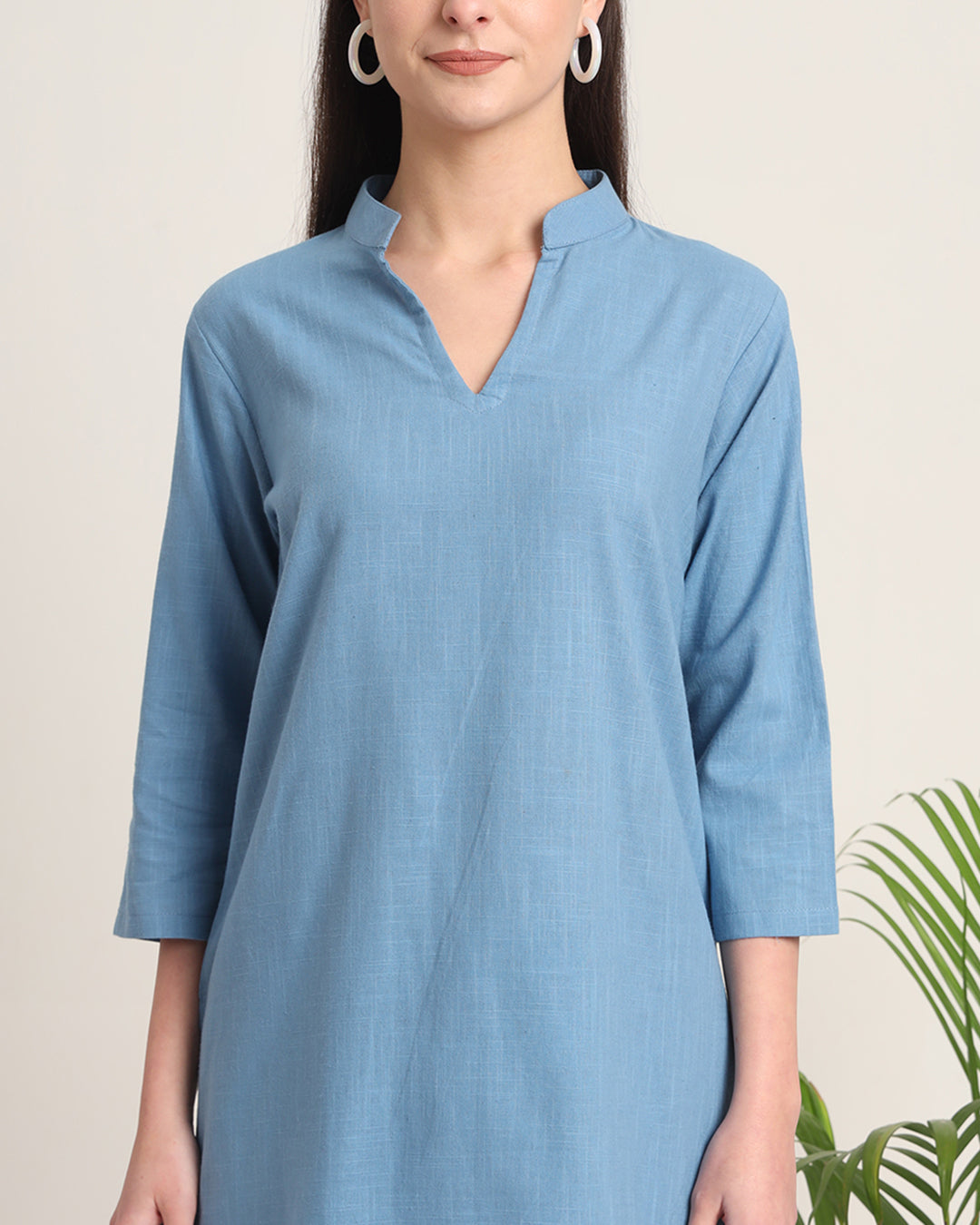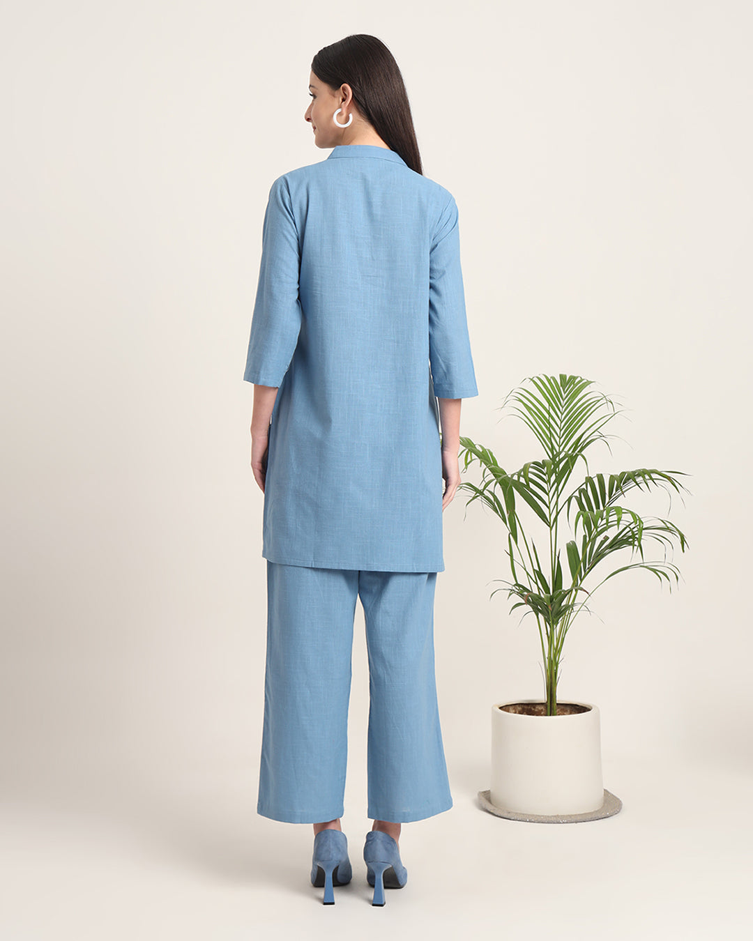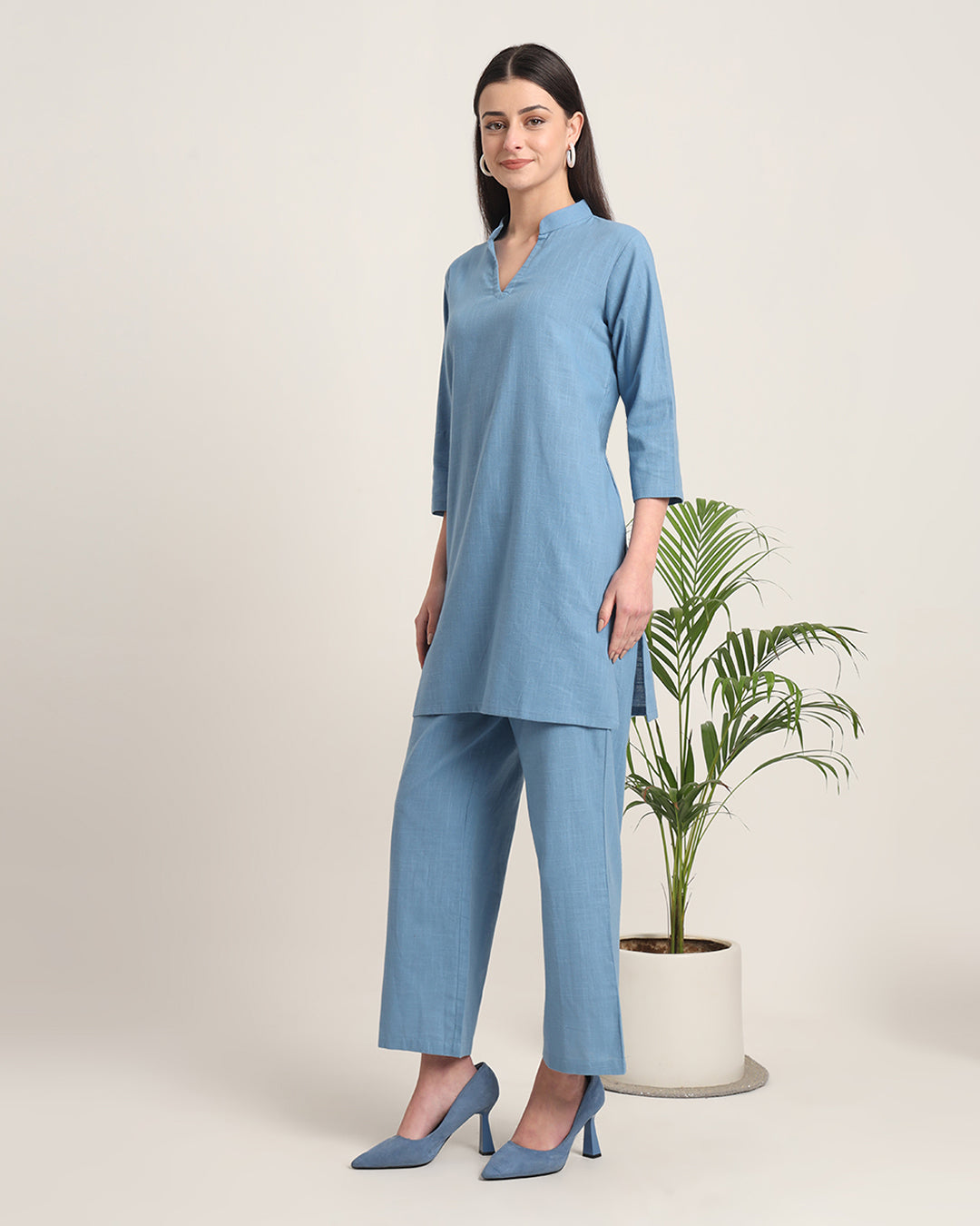 Blue Dawn Collar Neck Mid Length Solid Co-ord Set