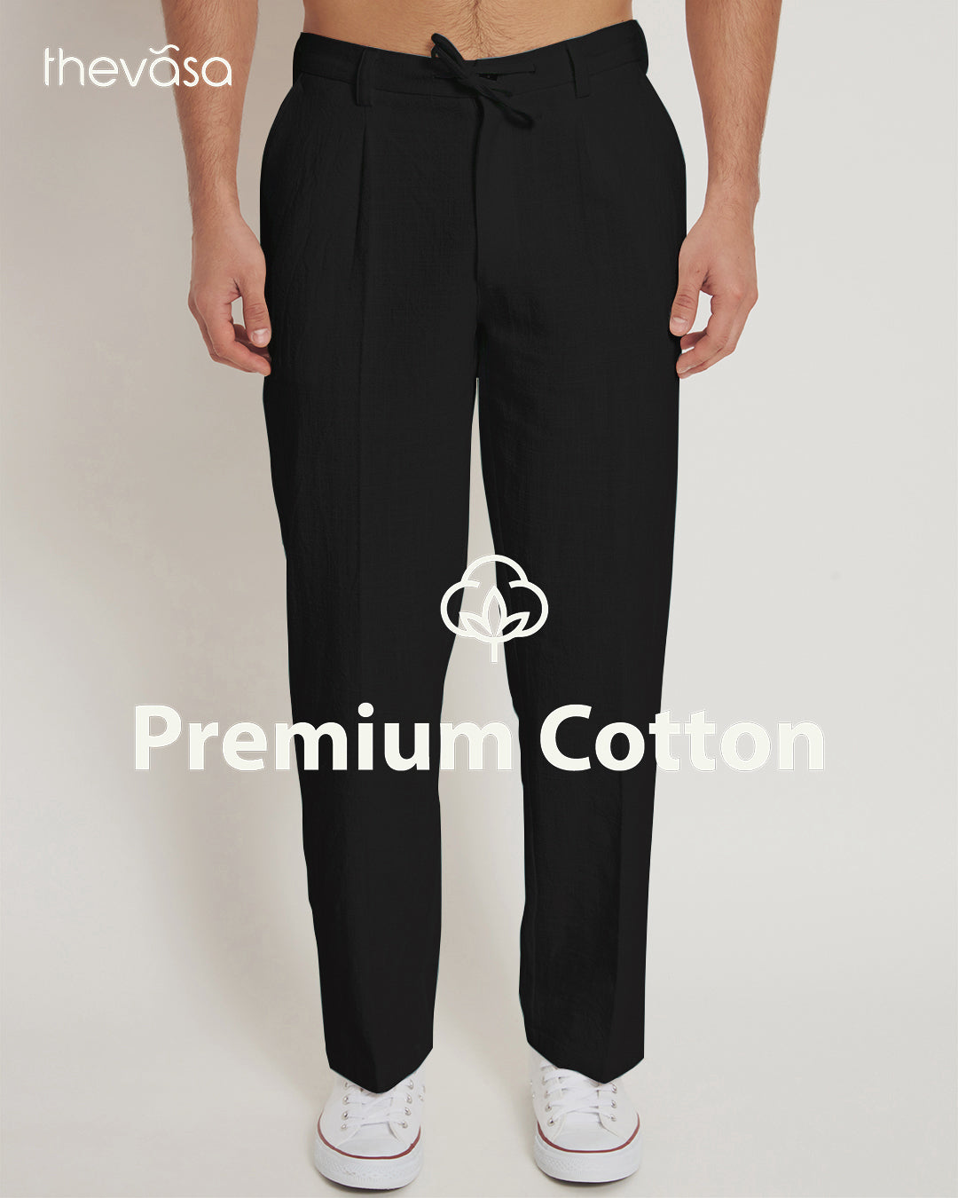 A comfortable and neatly finished pair of trousers is a must-have. On top of that. the versatility of a pair of straight clean cut pants like these will always be unbeatable. We have ensured that all these boxes are checked-off. Made from premium quality cotton in a light beige colour, these pants feature a button closure, belt loops and a drawstring waist for an even better fit.