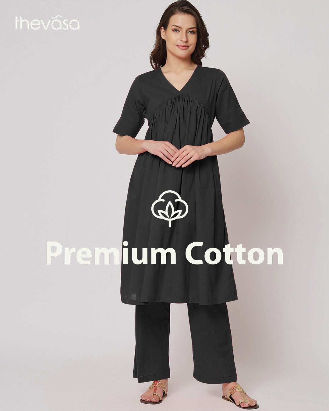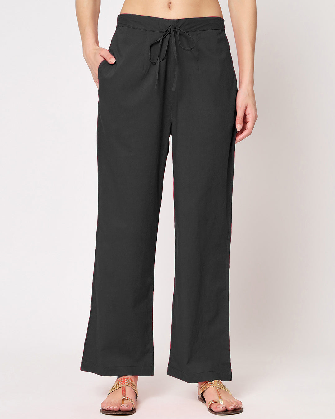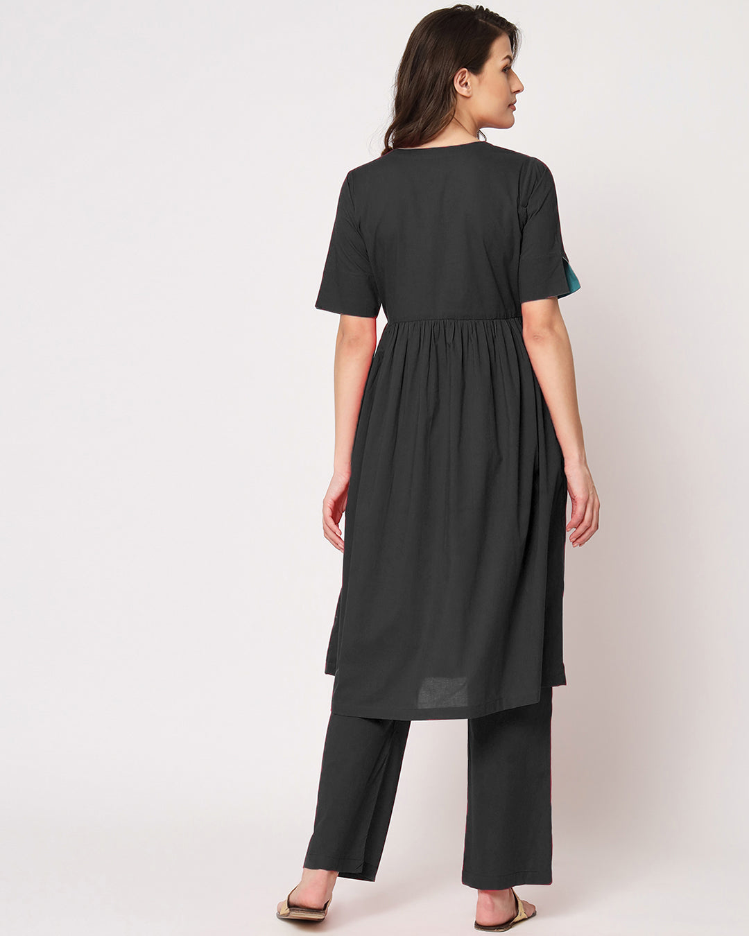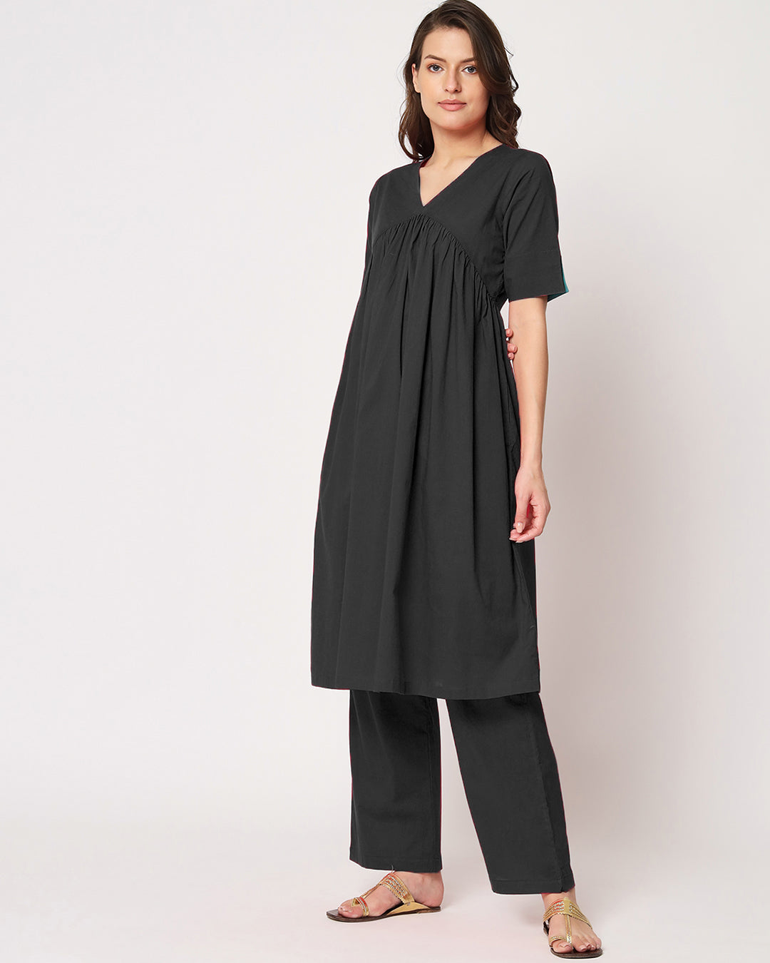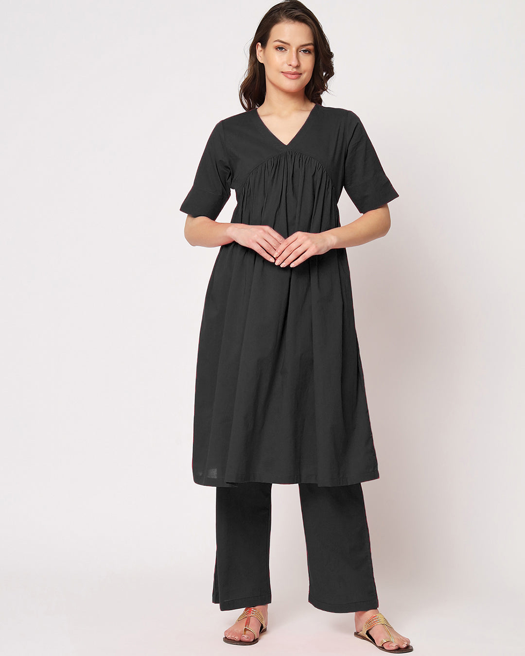 Classic Black Gathered Solid Co-ord Set