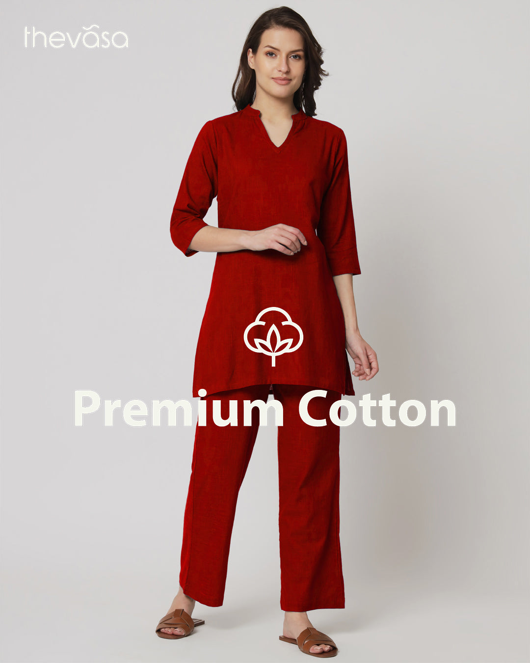 Classic Red Collar Neck Mid Length Solid Co-ord Set