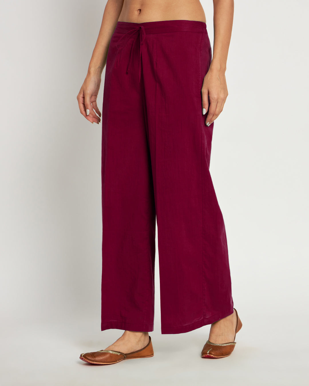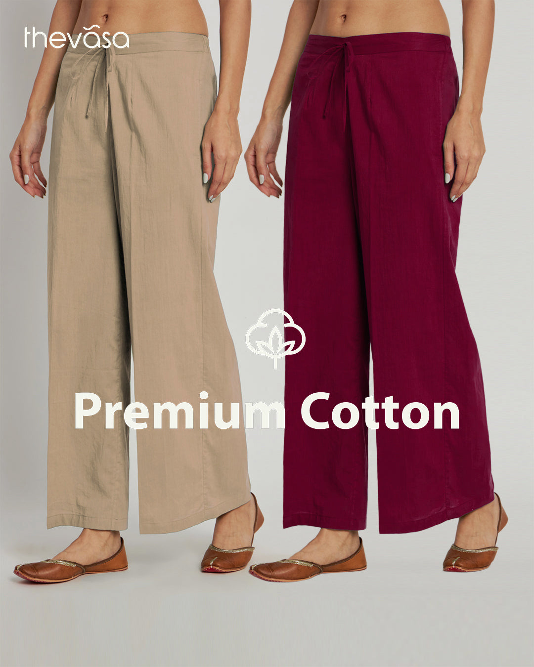 Combo: Beige & Russet Red Wide Pants- Set Of 2