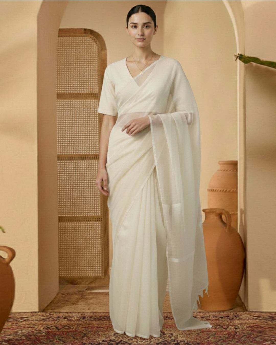 Silk Cream Deep V Blouse