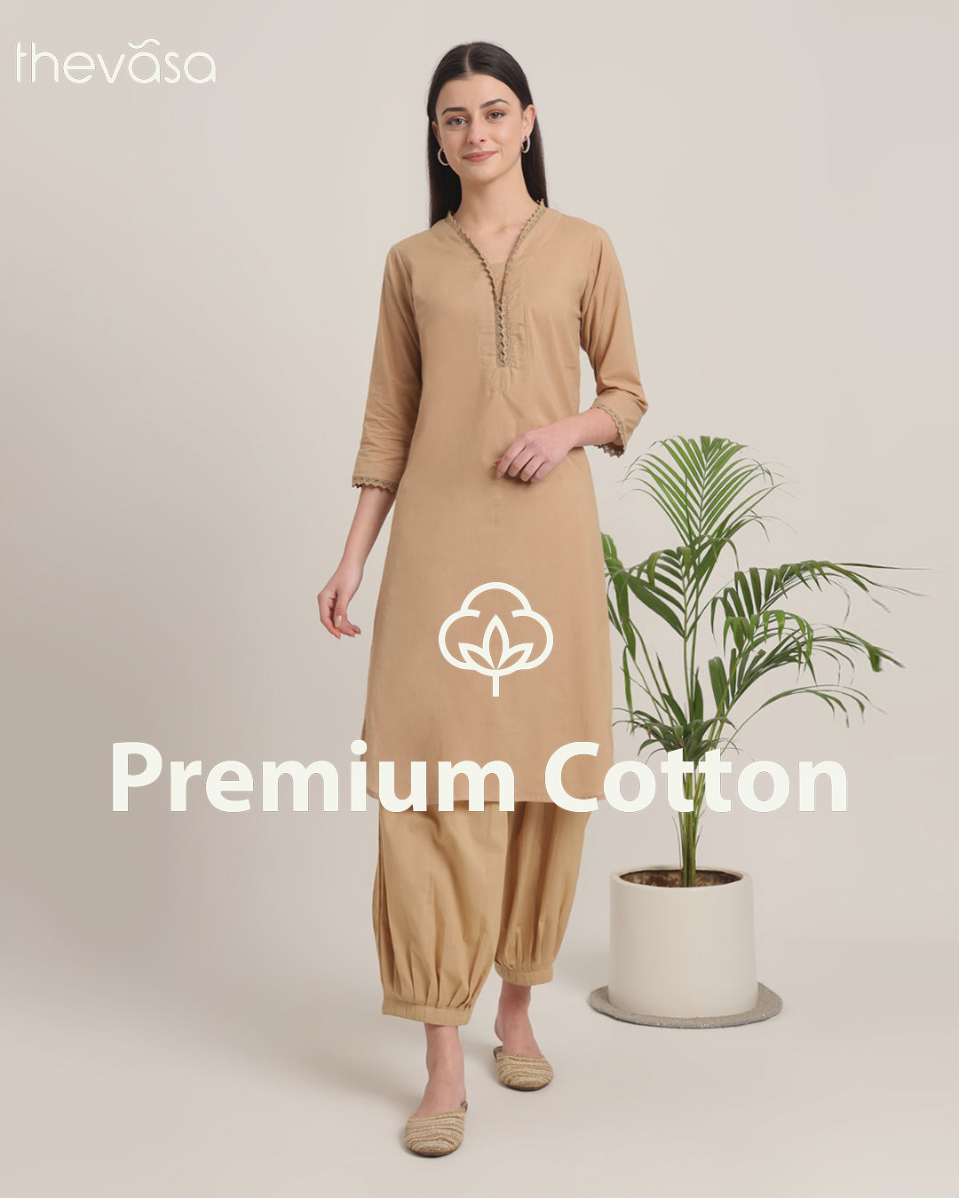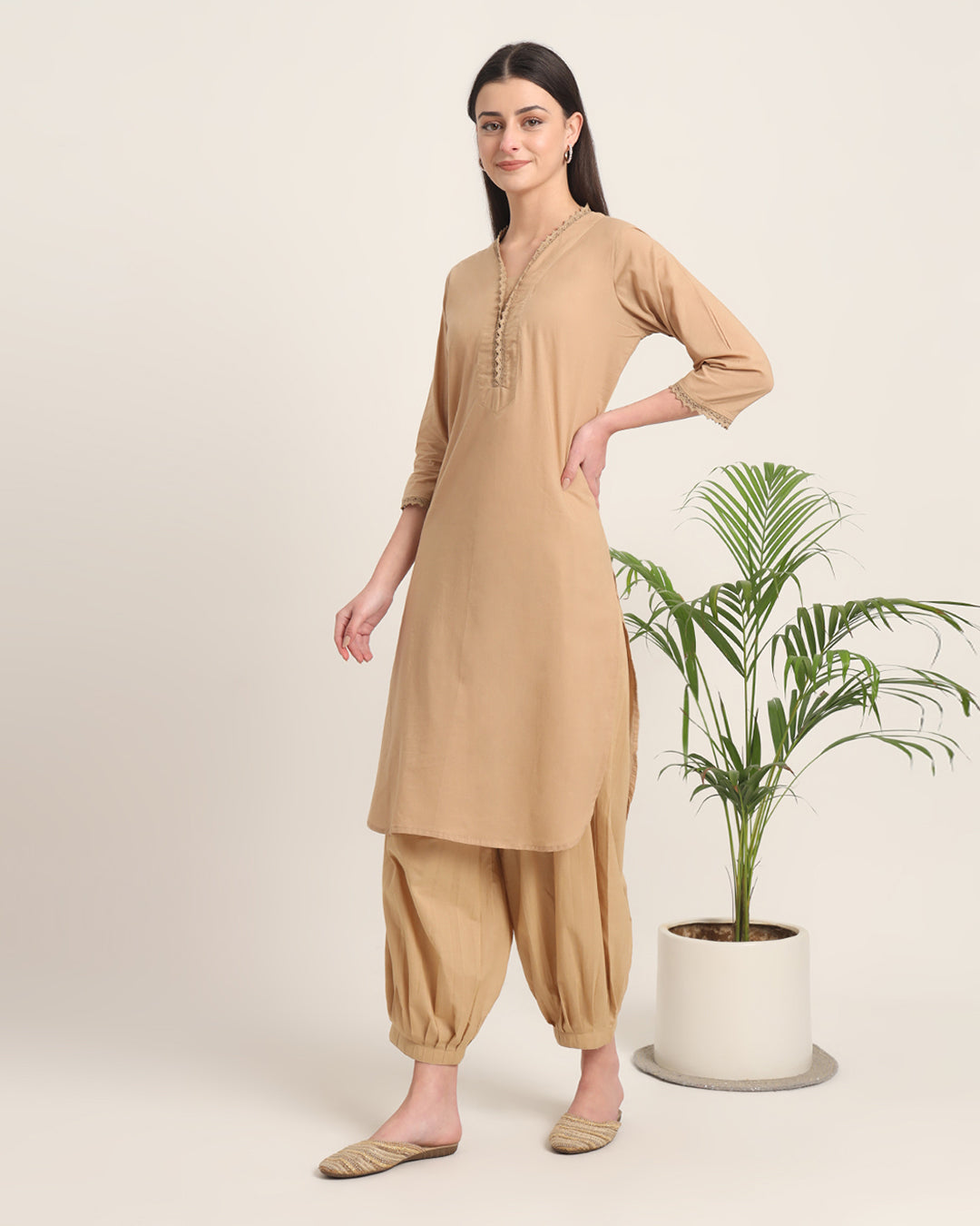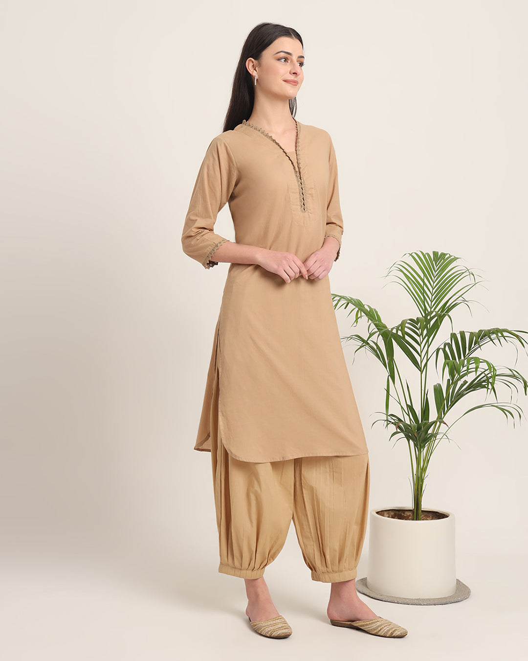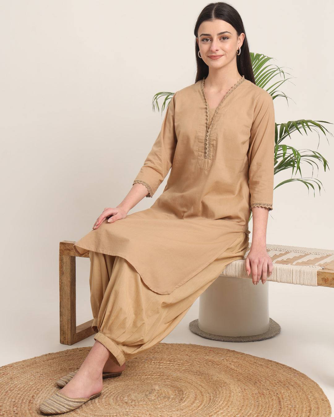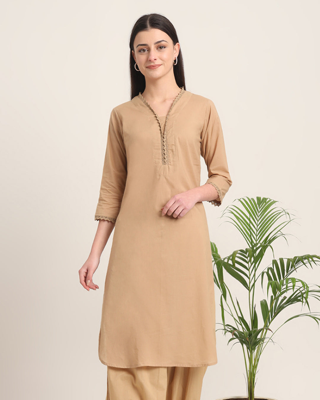 Day In Beige Lace Affair Solid Kurta (Without Bottoms)
