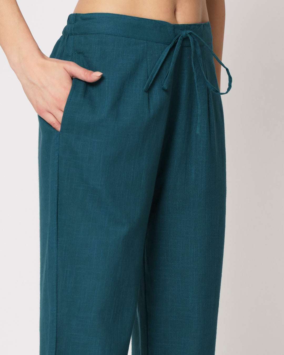 Deep Teal Collar Neck Mid Length Solid Co-ord Set
