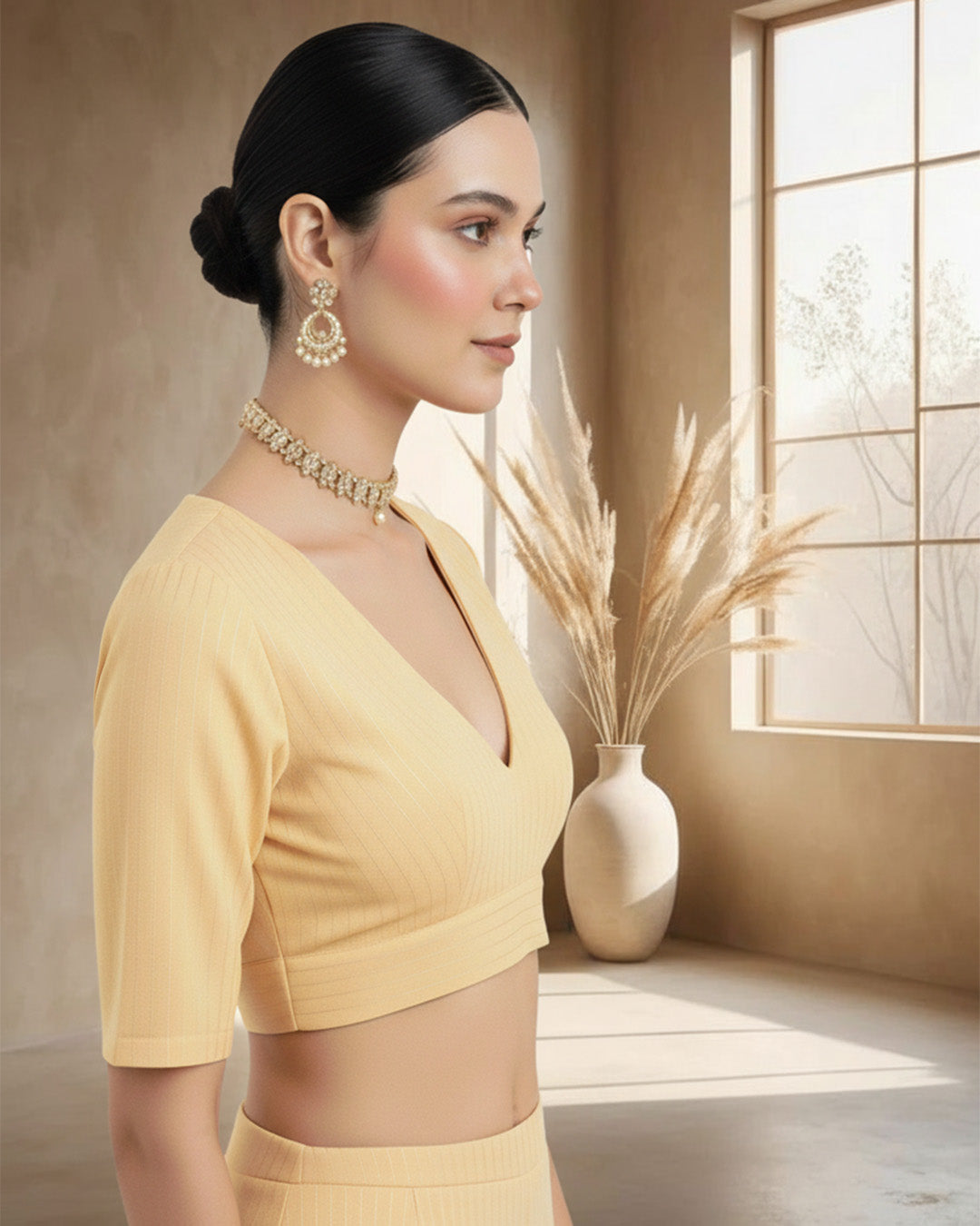 "Unveil the enchantment of Lurex blouses a fusion of elegance and shimmer that transforms any moment into a captivating affair. Elevate your style with this uniquely bewitching garment."