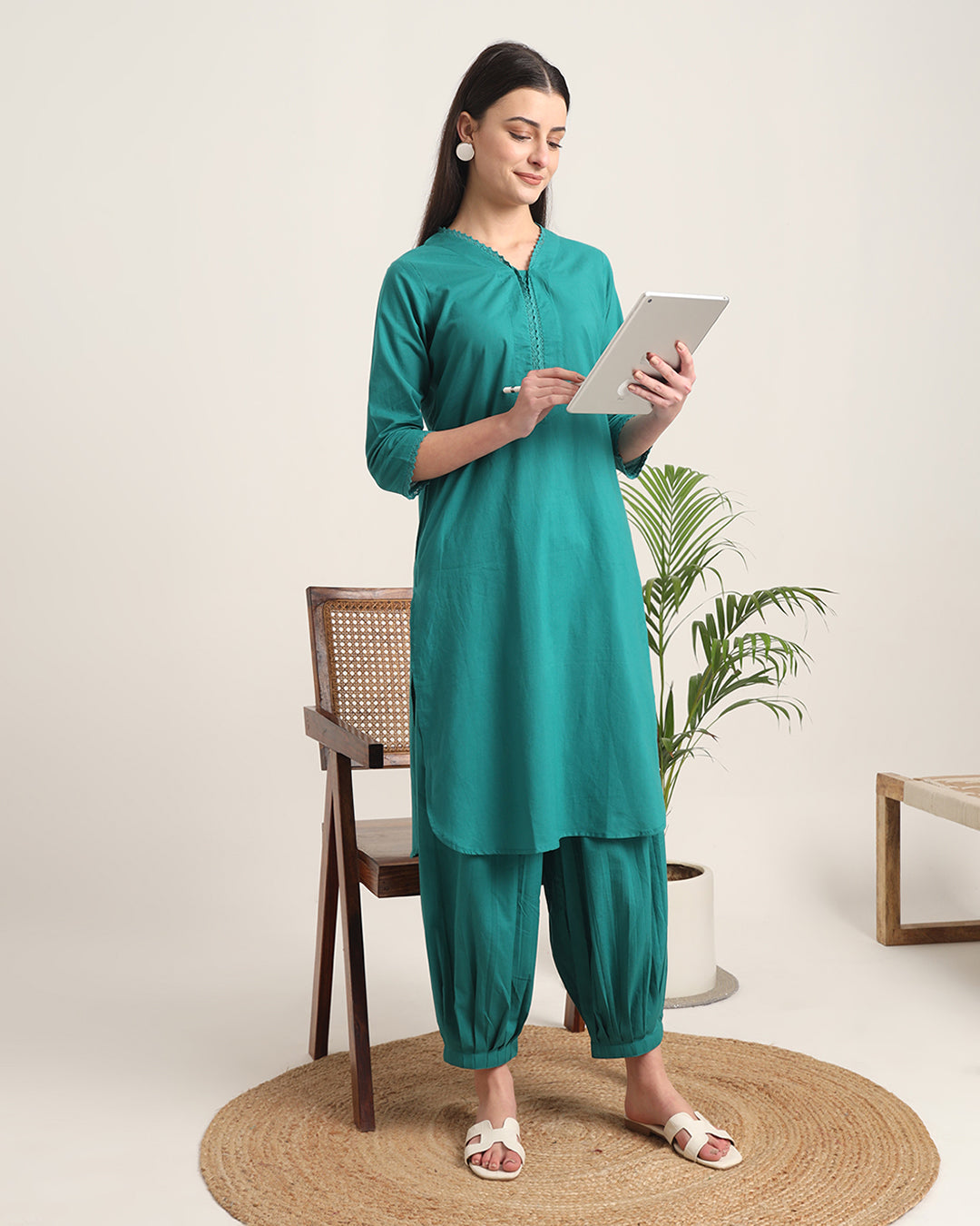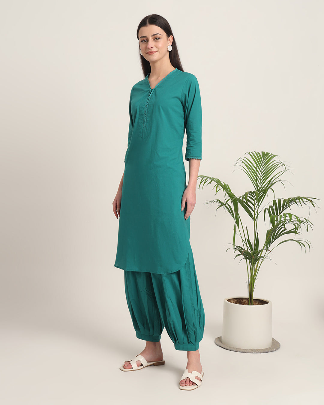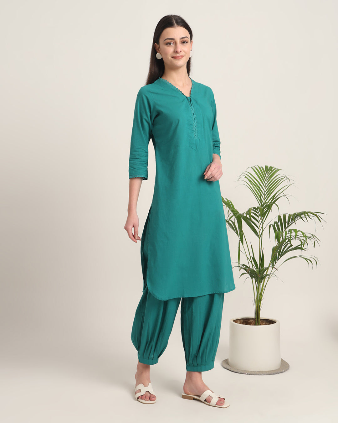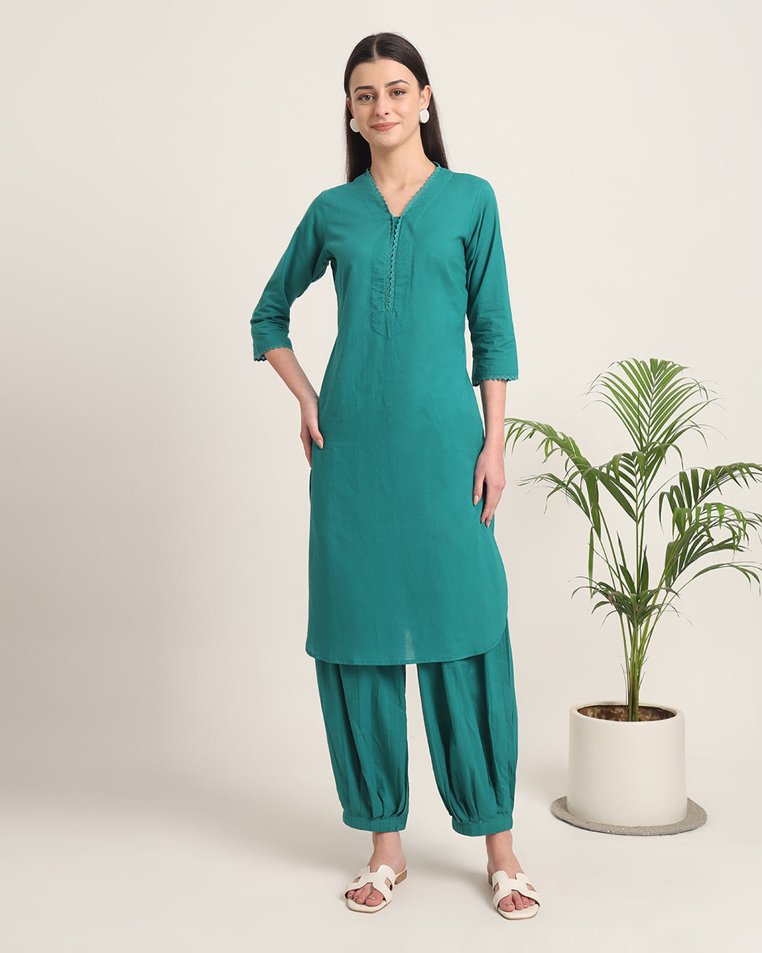Green Gleam Lace Affair Solid Co-ord Set