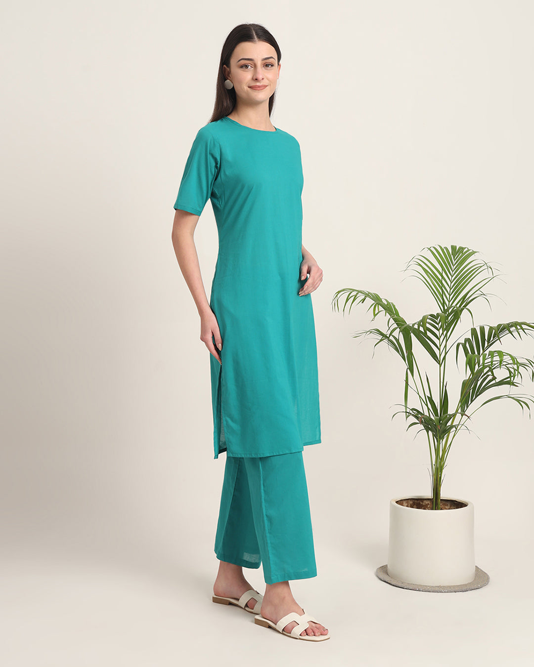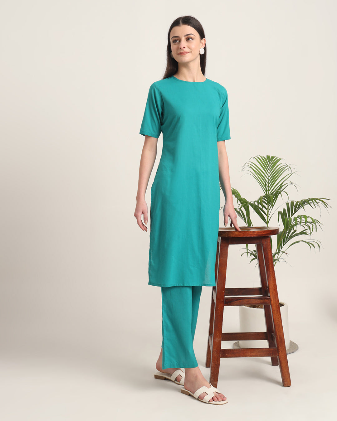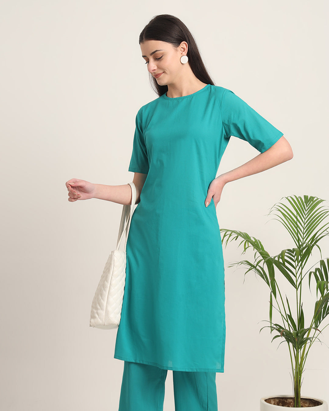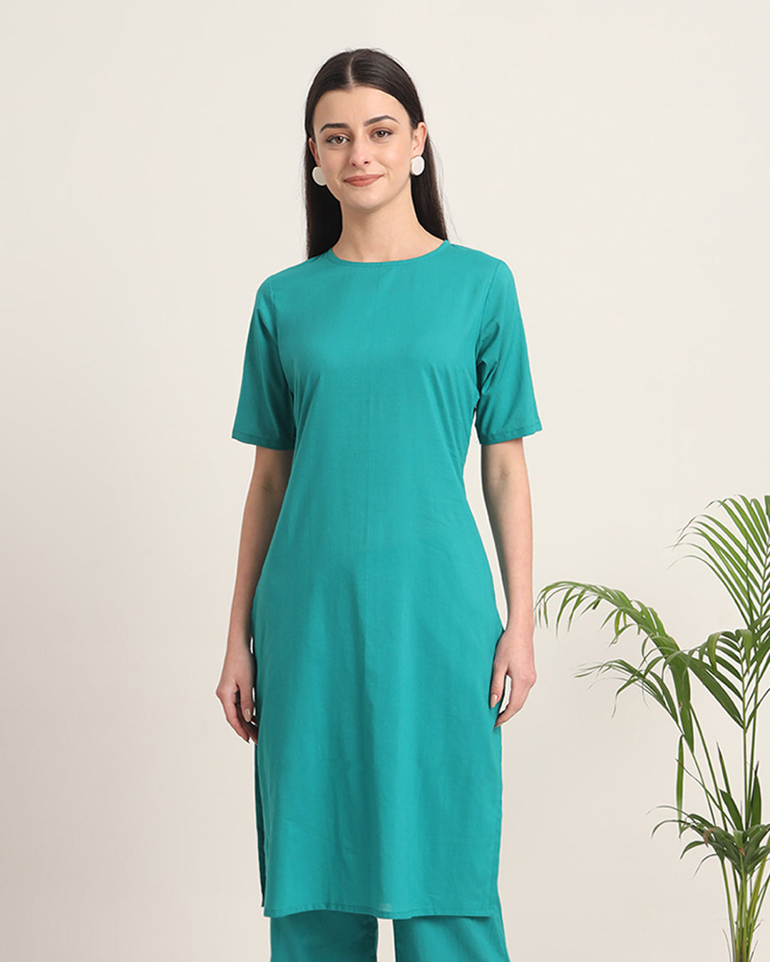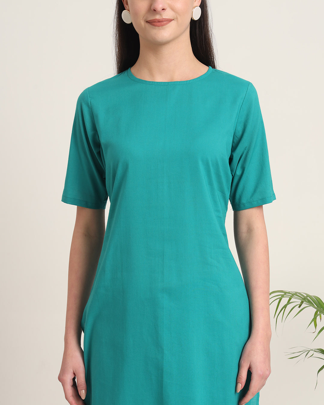 Green Gleam Round Neck Long Solid Kurta (Without Bottoms)