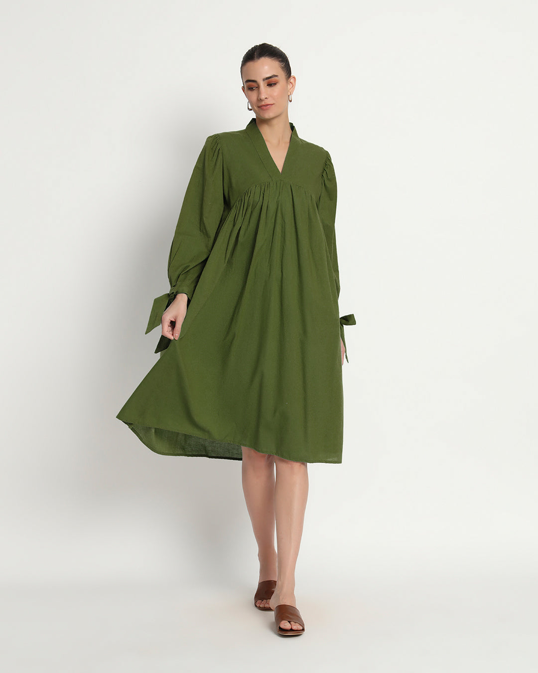 Unveiling a new realm of style: our solid gathered dresses adorned with captivating tie-up bows on the sleeves. Redefine elegance, stand out from the crowd, and make