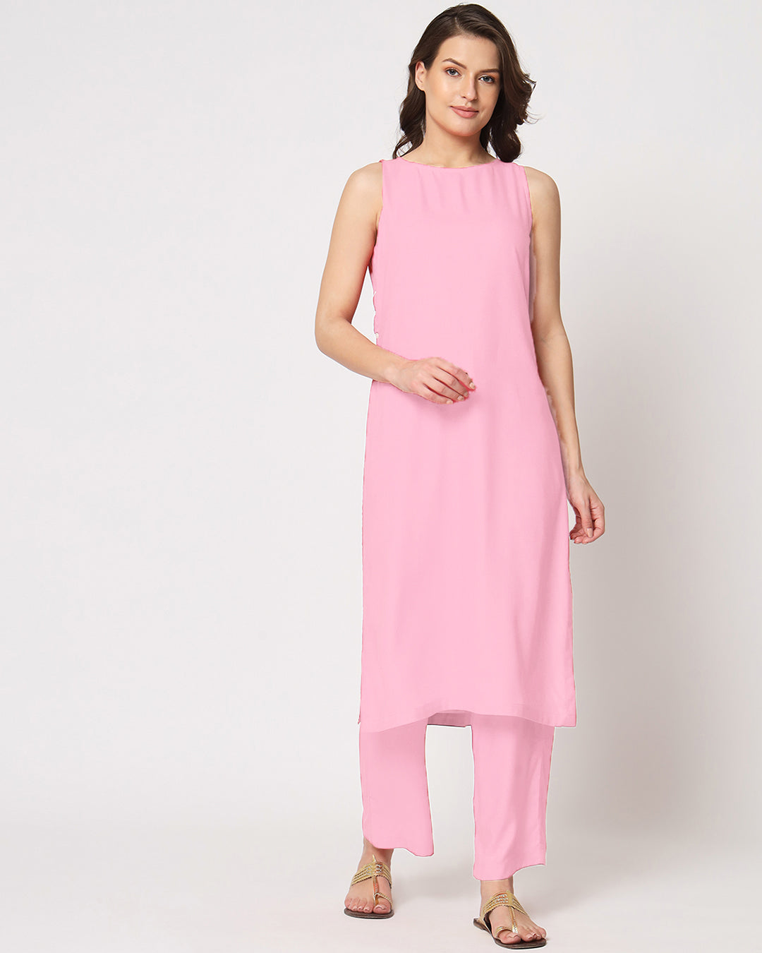 Pink Mist Sleeveless Long Solid Kurta (Without Bottoms)