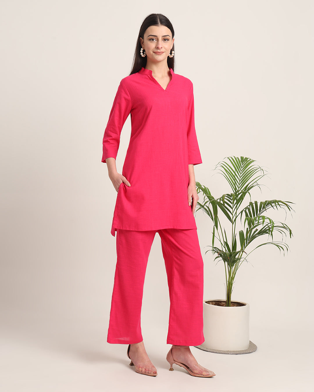 Queen's Gulabi Collar Neck Mid Length Solid Co-ord Set