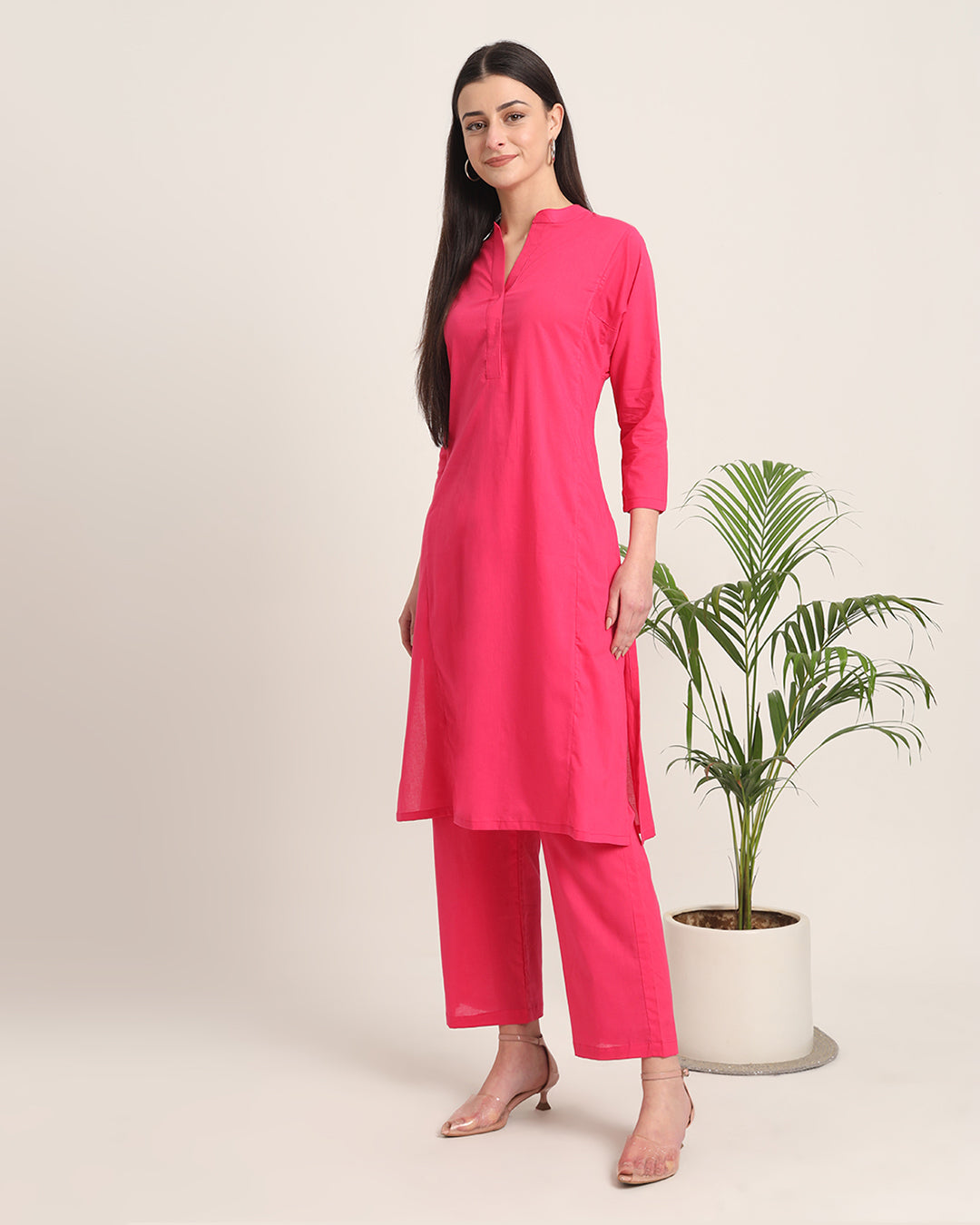 Queen's Gulabi Everyday Bliss Notch Neck Solid Co-ord Set